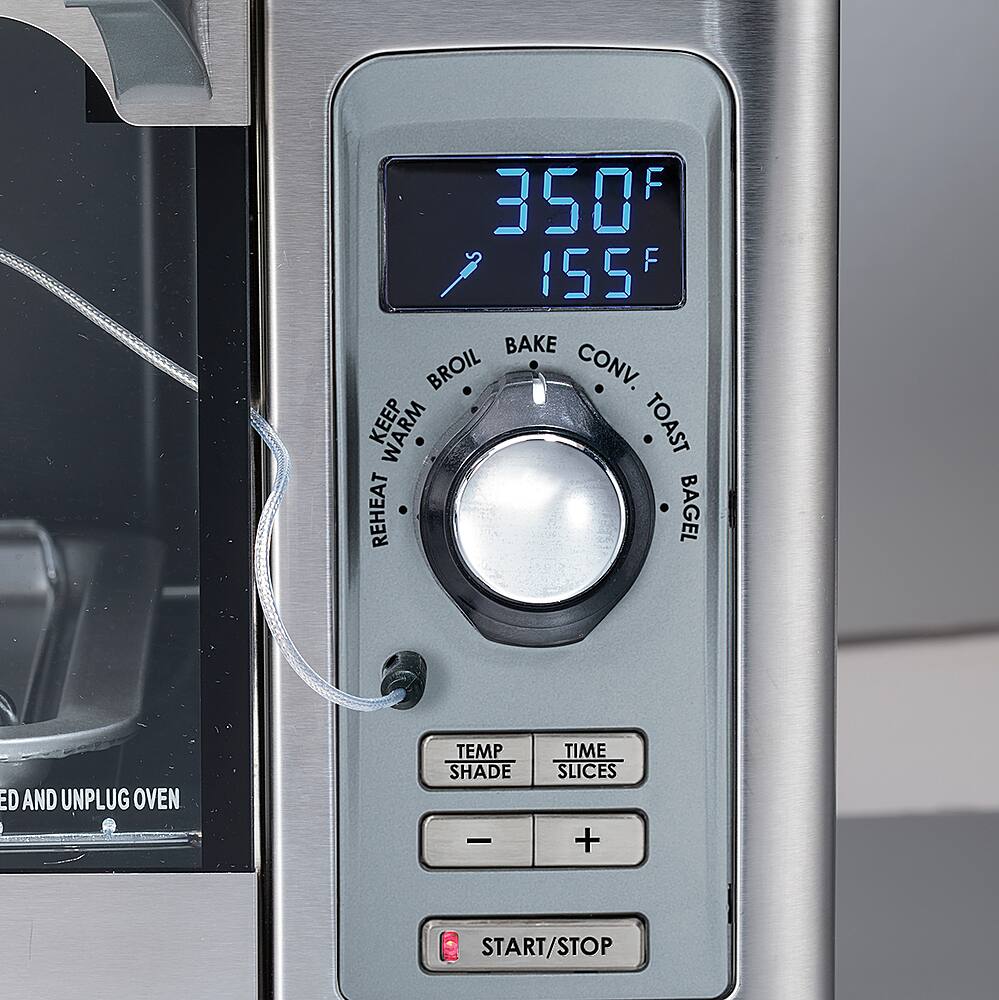 A:AnswerThank you for your question. The large countertop oven lets you cook a 12" pizza, 6 lb. chicken, 6 slices of toast or a 9" x 13" pan. It also has 3 rack positions to accommodate a variety of cooking needs.