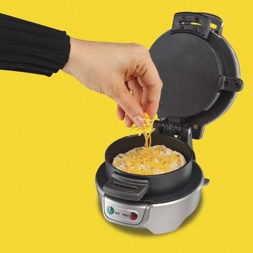 This question and answer was generated by AI based on customer and product data.QuestionWhat safety features does the breakfast sandwich maker have to prevent accidents or burns?
