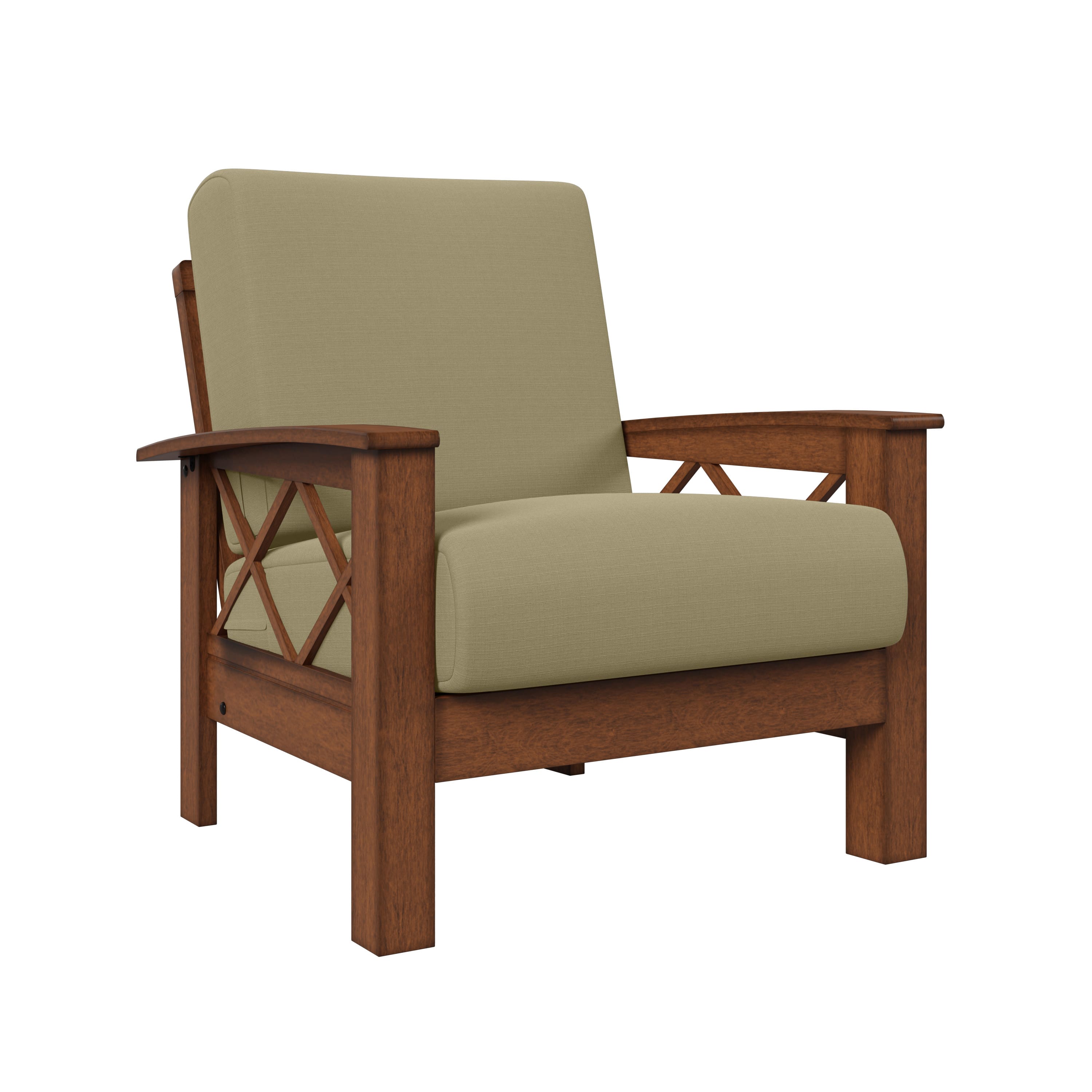 Handy Living - Riverwood Exposed Wood Frame Traditional Linen Armchair - Barley Tan
