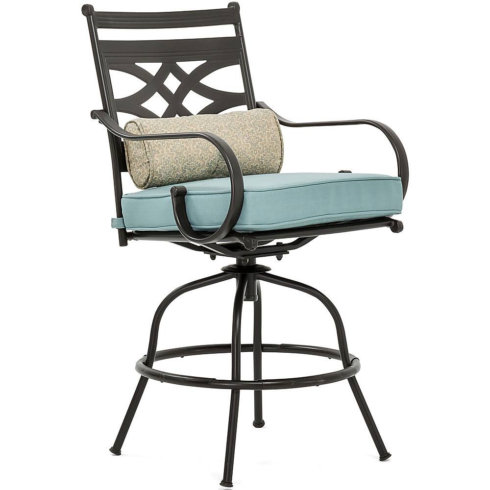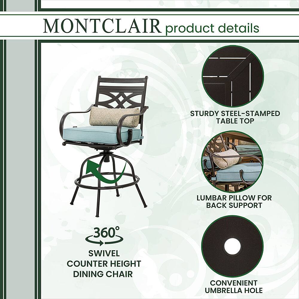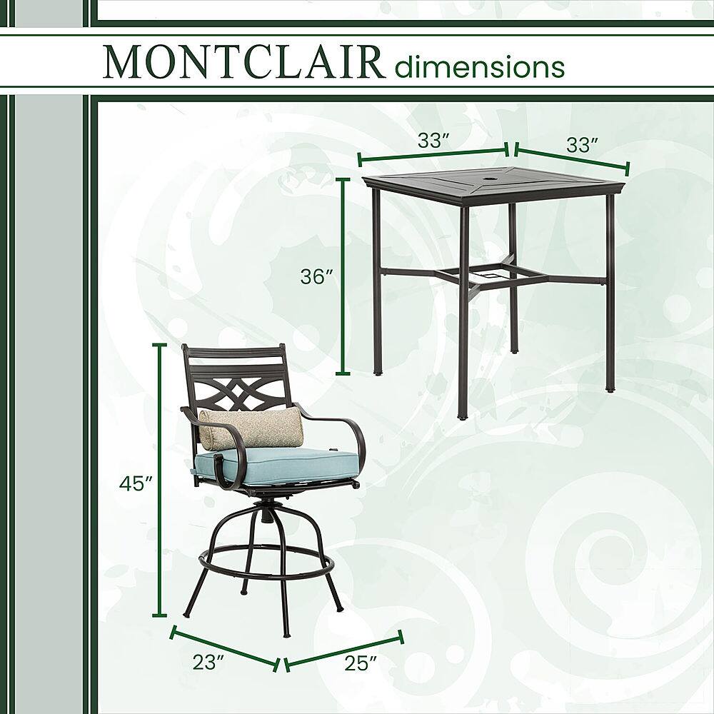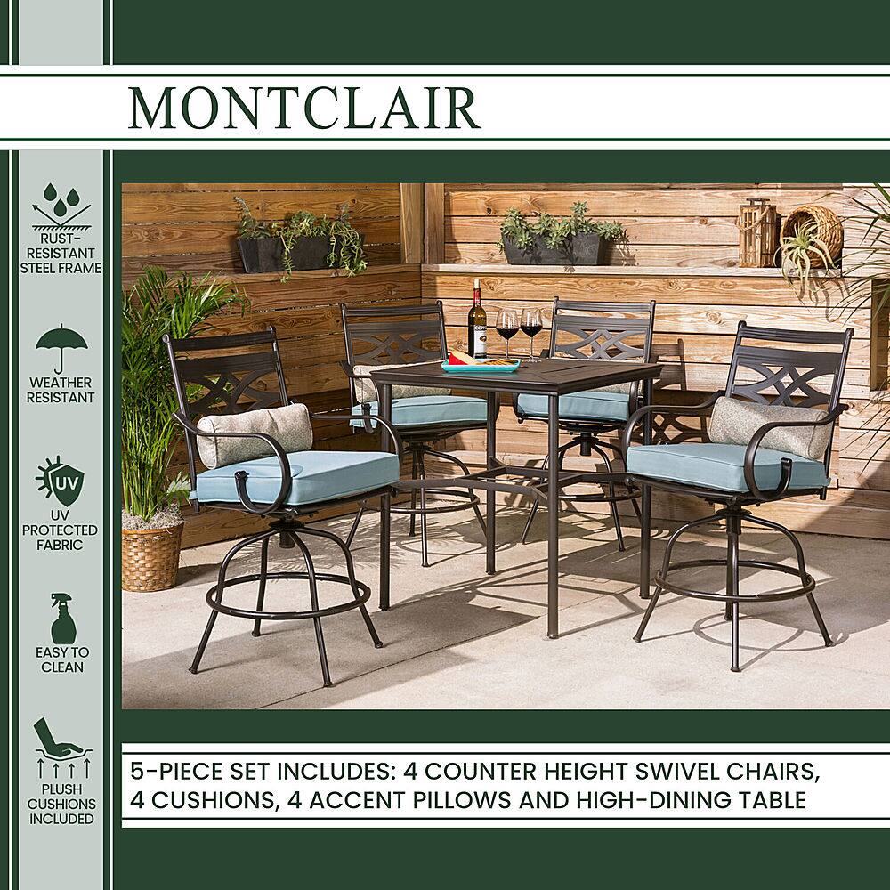 This question was asked about the related product: Hanover - Montclair 5-Piece High-Dining Patio Set with 4 Swivel Chairs and a 33-In. Counter-Height Dining Table - Chili Red/Brown