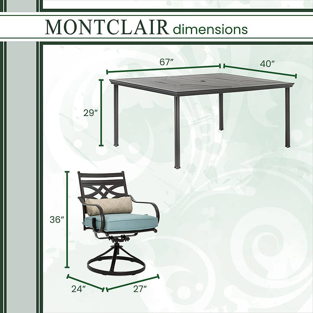 - A:Answer This dining set is designed to offer style and comfort all year long.