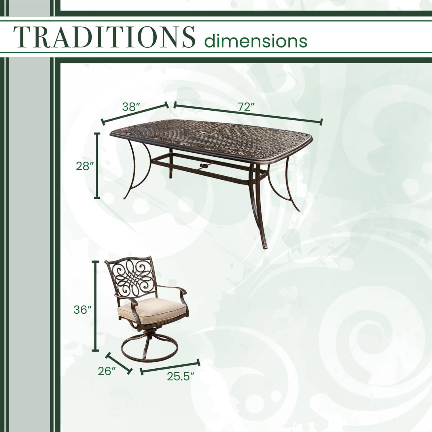 - A:Answer The dining table is 72 inches wide and 38 inches long.