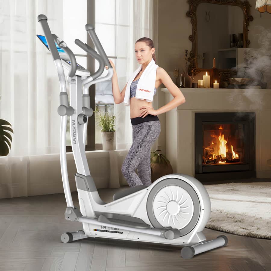 HARISON - Elliptical Machine for Home 350 LB, 16-Level Resistance with Bluetooth - BBE1190W - White
