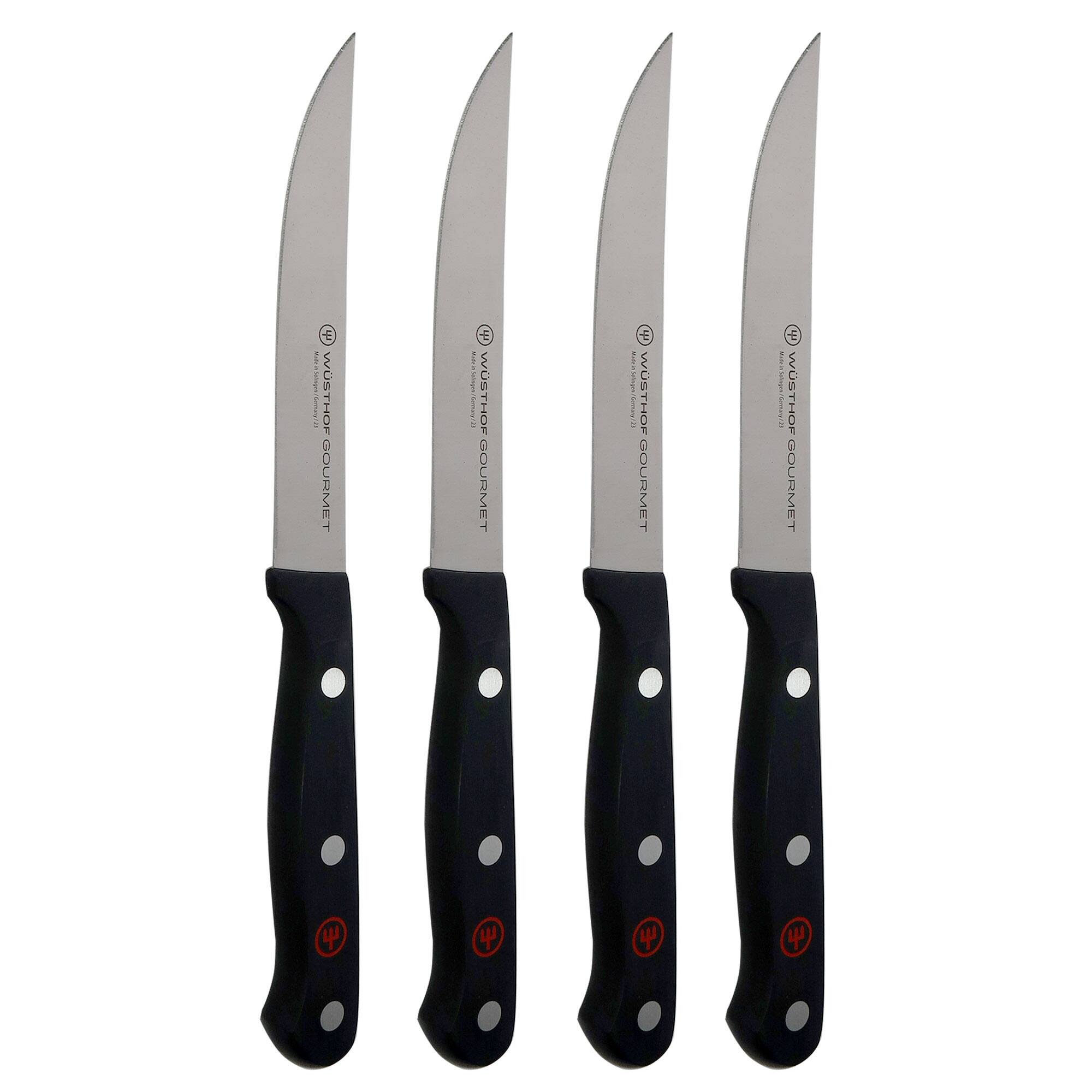 This question and answer was generated by AI based on customer and product data.QuestionWhat material is used for the blades of the knives in this set?