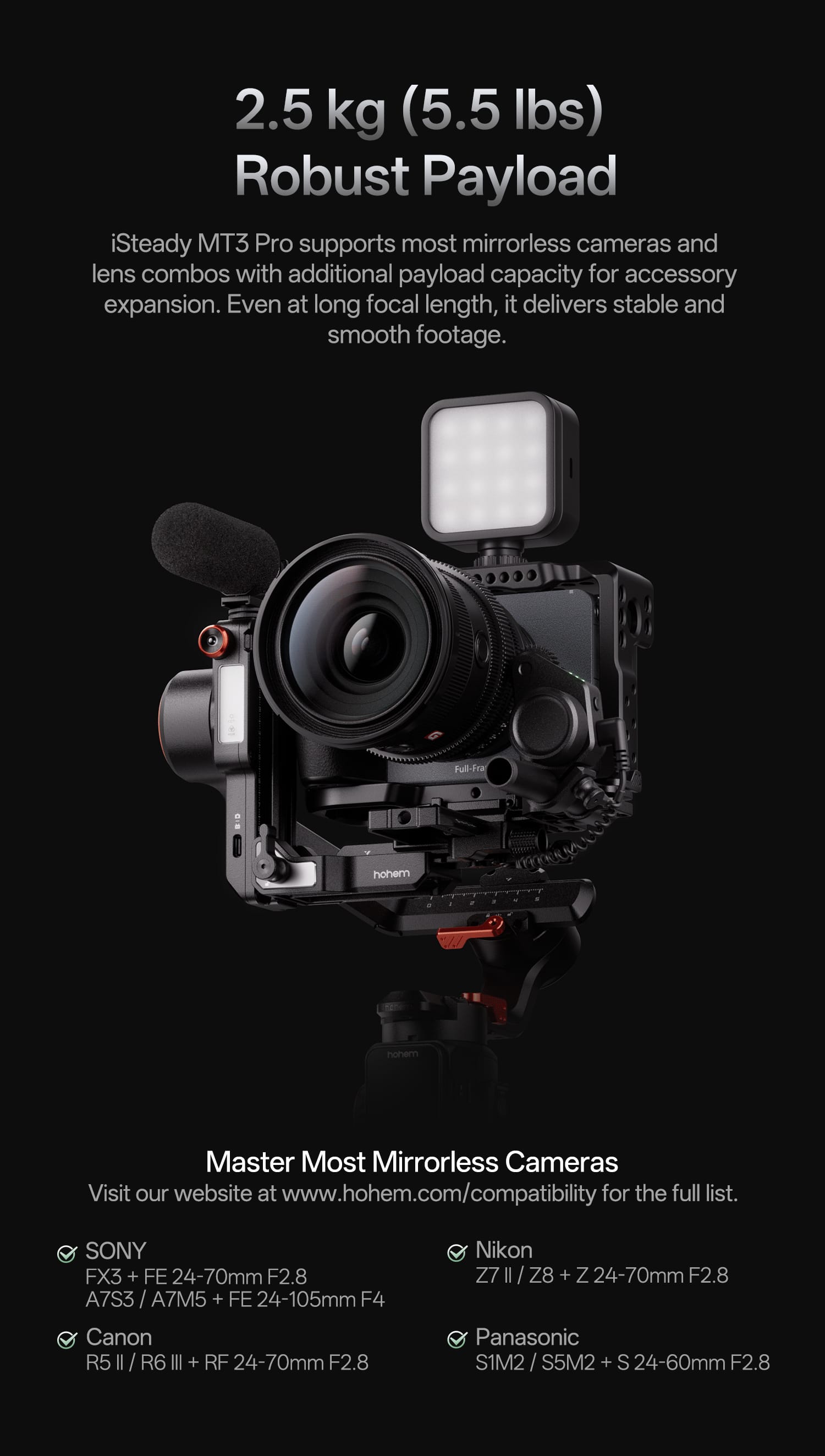 - A:Answer The maximum weight capacity for cameras used with this stabilizer is 5.51 pounds.
