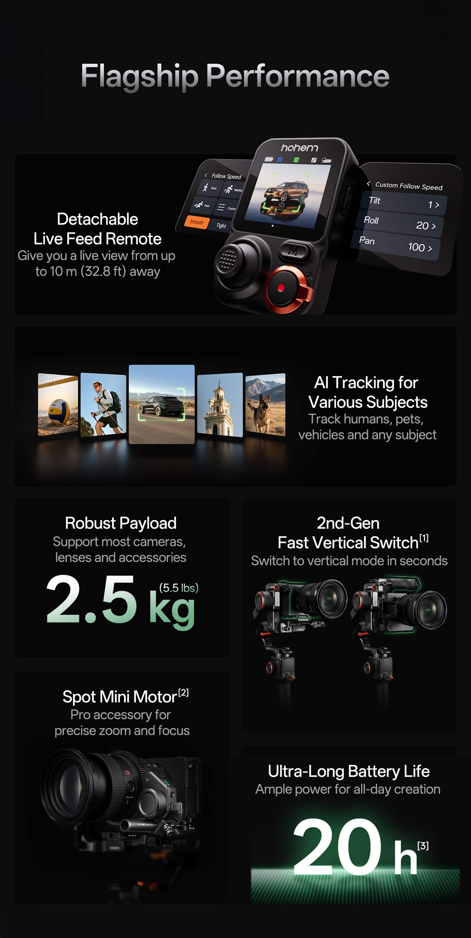 - A:Answer Yes, this camera gimbal has auto tracking features for face.