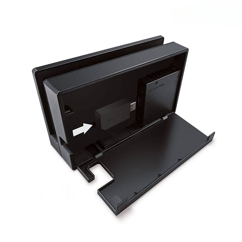 This question and answer was generated by AI based on customer and product data.Q: QuestionHow does the adapter connect to the Nintendo Switch?