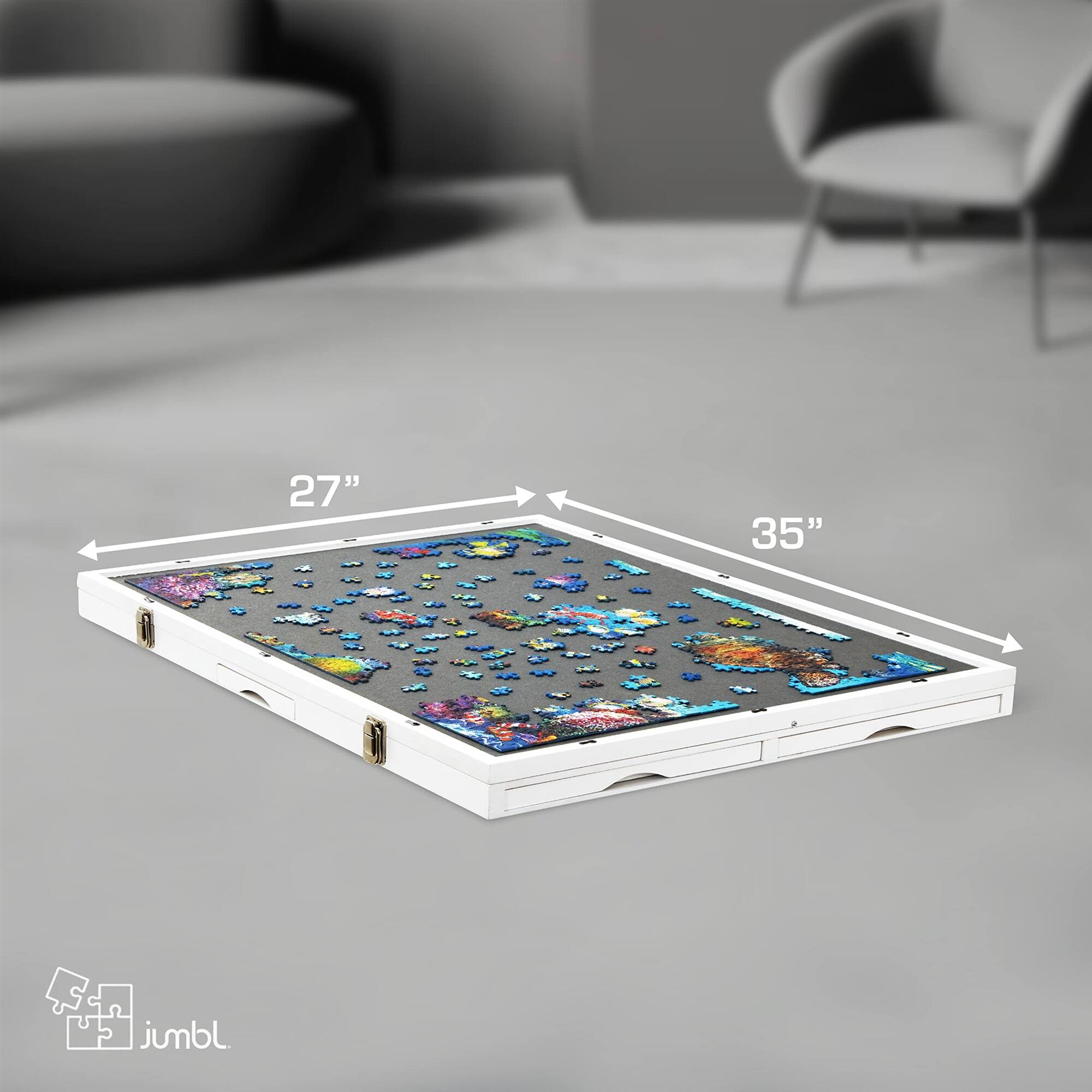 Jumbl - 1500-Piece Puzzle Board - 27 x 35" Tilting Puzzle Board with Felt Surface & 6 Drawers - White