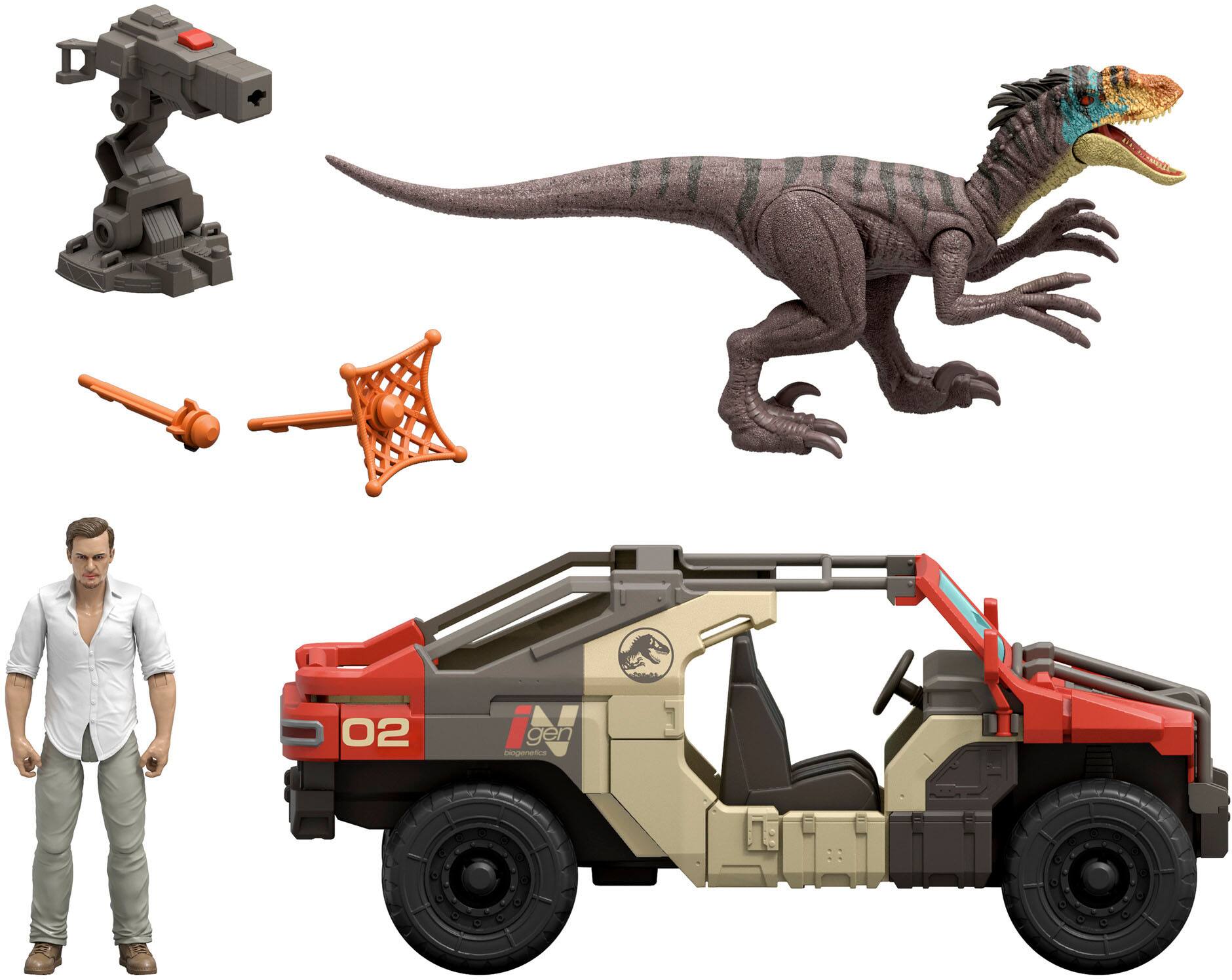 - A:Answer Yes, this vehicle set includes a Velociraptor.