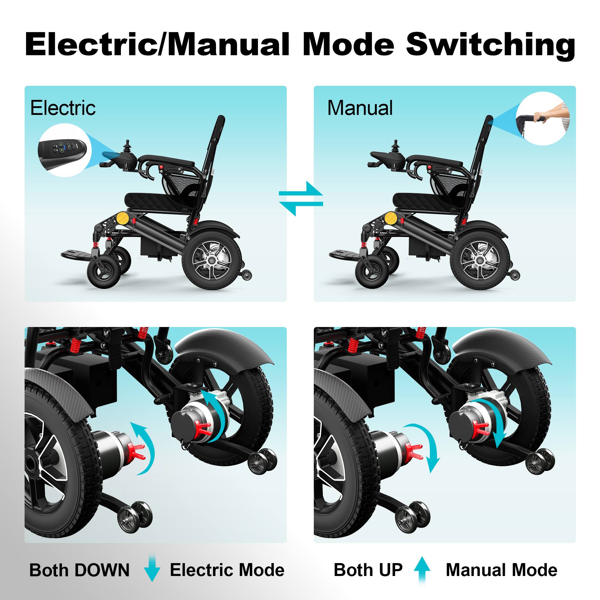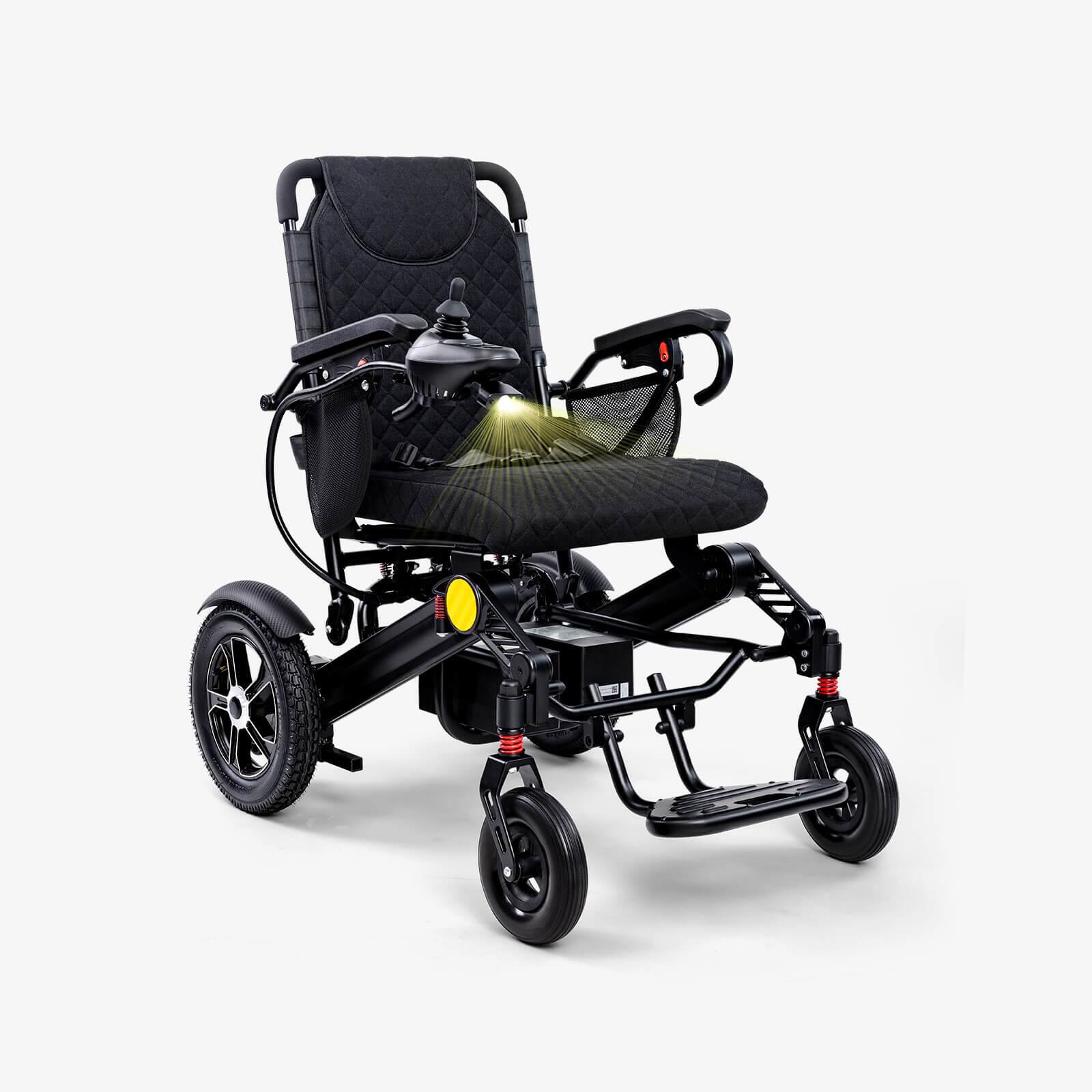 KERDOM - 2 in 1 Electric/Manual Wheelchair with Led Light + 1 Extra Removable Lithium Battery, Adjustable Back, 68lbs Foldable - Black