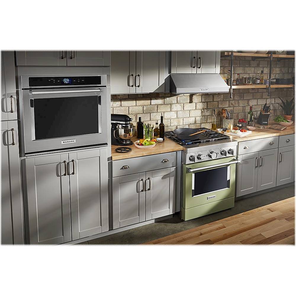- A:Answer This dual-fuel range combines a gas cooktop with the even baking of an electric oven and has four burners.