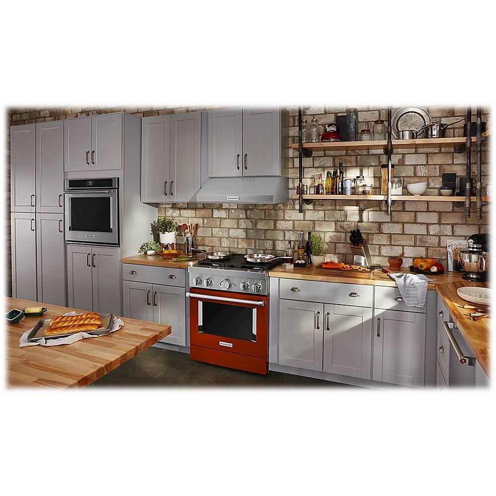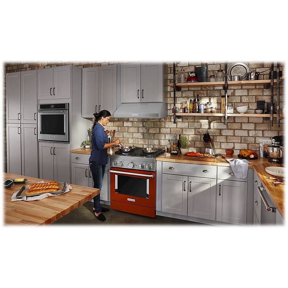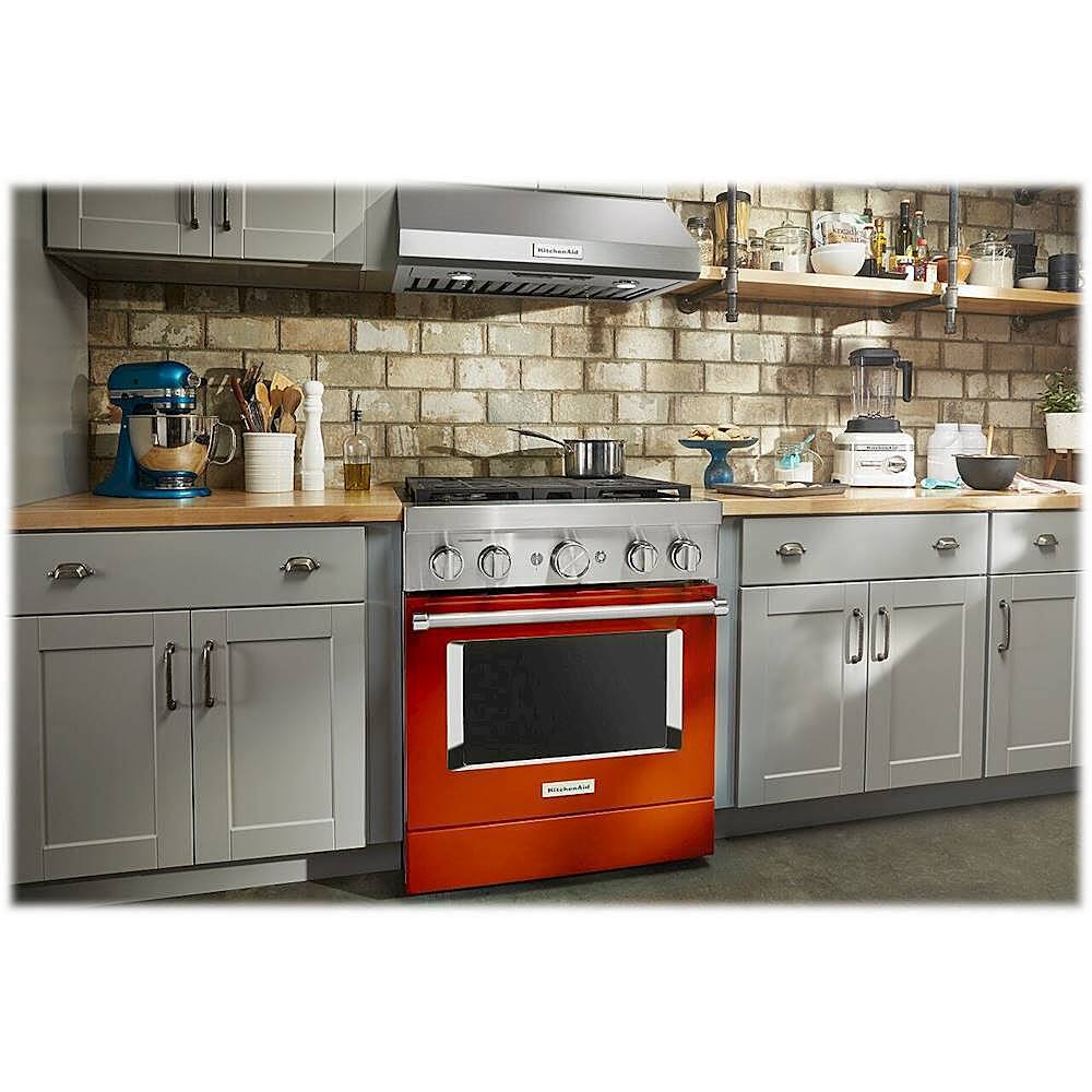 - A:Answer This dual-fuel range combines a gas cooktop with the even baking of an electric oven and has four burners.