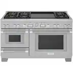 This question was asked about the related product: KitchenAid - 6.3 Cu. Ft. Freestanding Double Oven Gas True Convection Range with Self-Cleaning and Griddle - Misty Blue