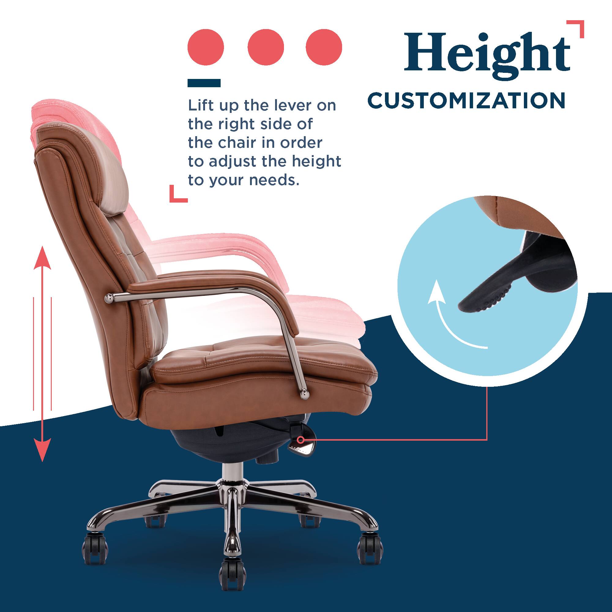 - A:Answer The seat height can be adjusted from a minimum of 18.75 inches to a maximum of 21.75 inches from the floor.