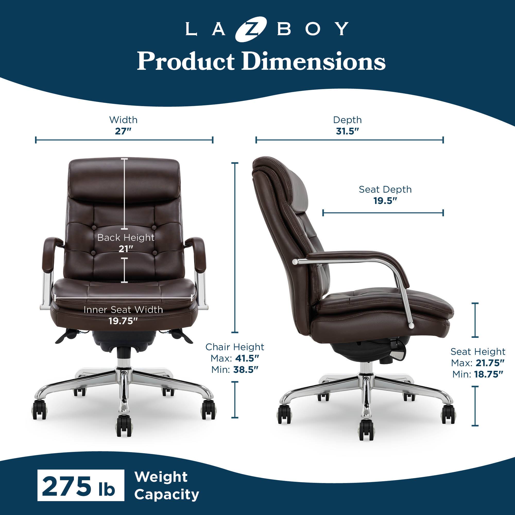 - A:Answer The seat height can be adjusted from a minimum of 18.75 inches to a maximum of 21.75 inches from the floor.