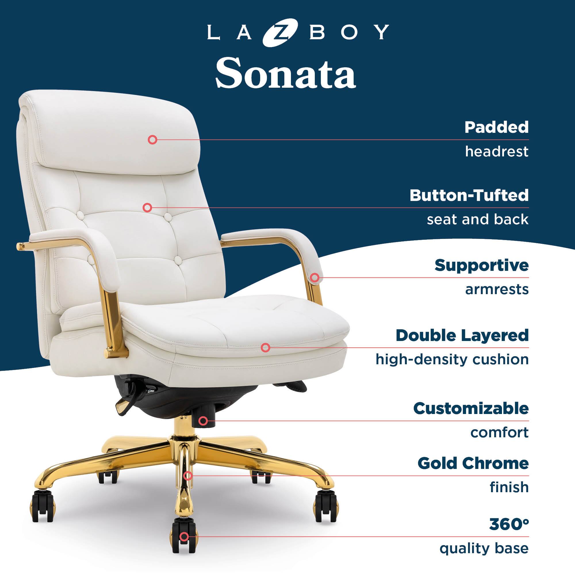 - A:Answer The Sonata Executive Mid-Back Bonded Leather Office Chair features soft, padded armrests for ergonomic support.