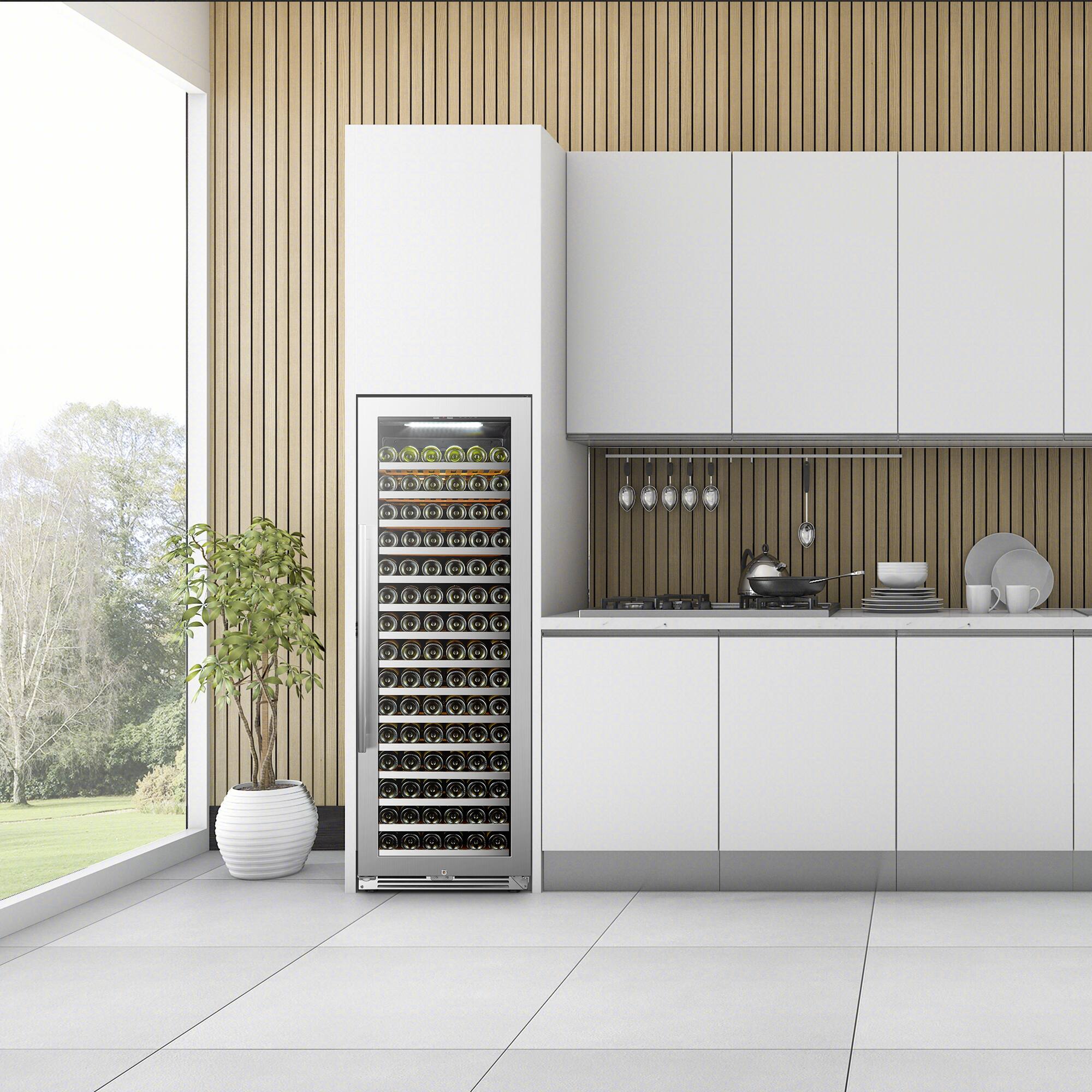 This question and answer was generated by AI based on customer and product data.QuestionHow many beech shelves does the wine cooler have, and how many bottles can each shelf store?