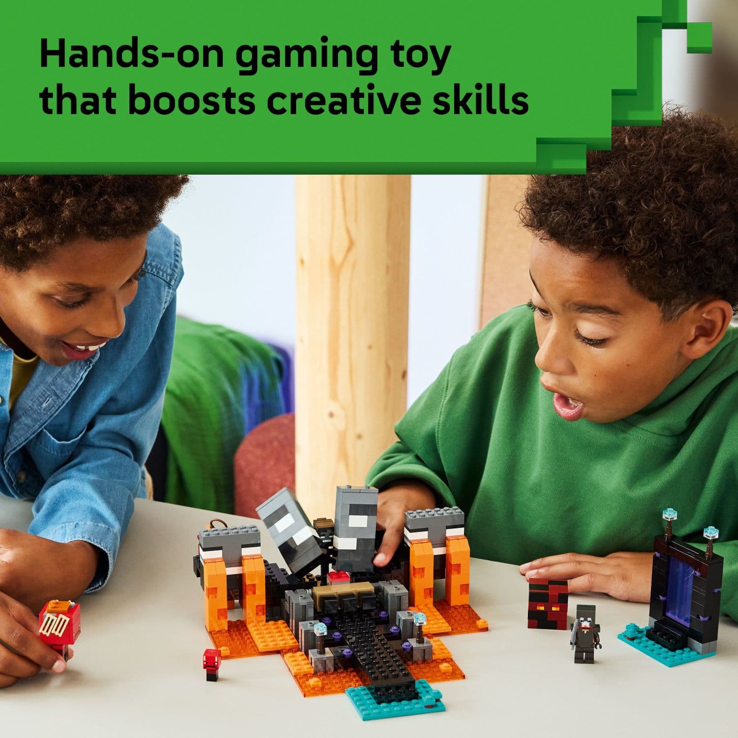 - A:Answer Yes, this building toy features a Nether portal.