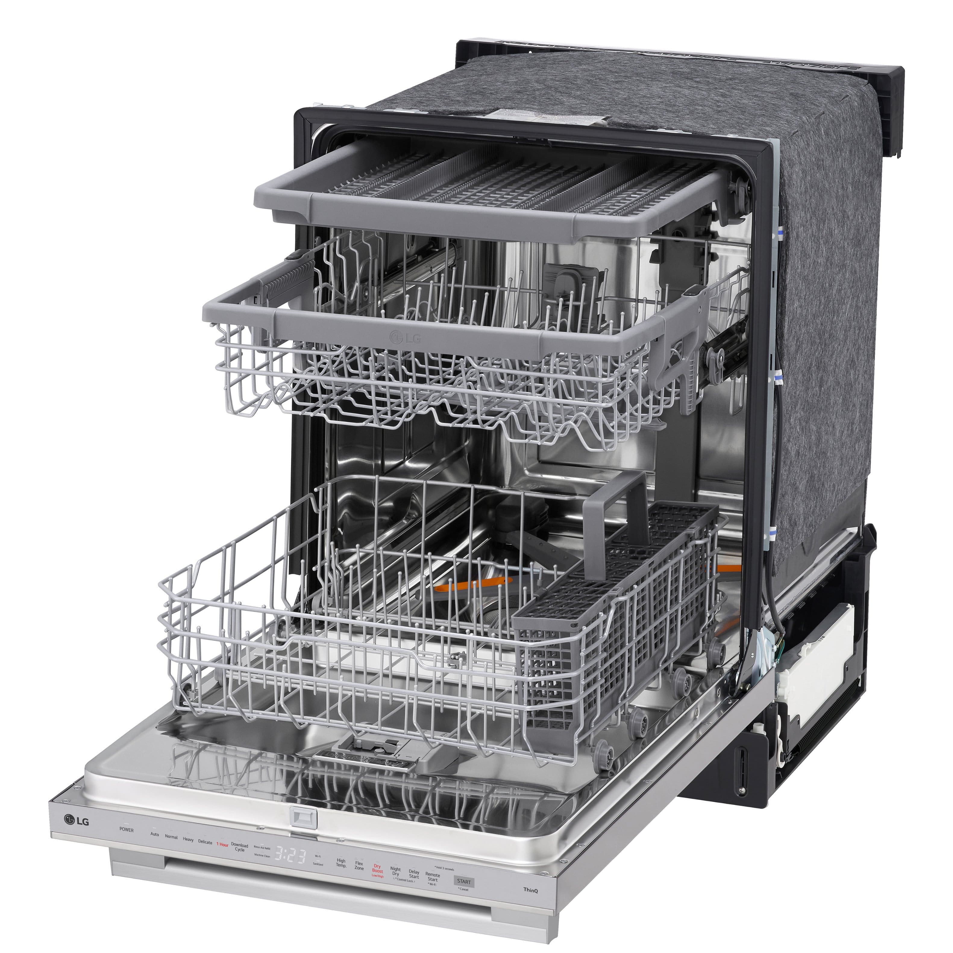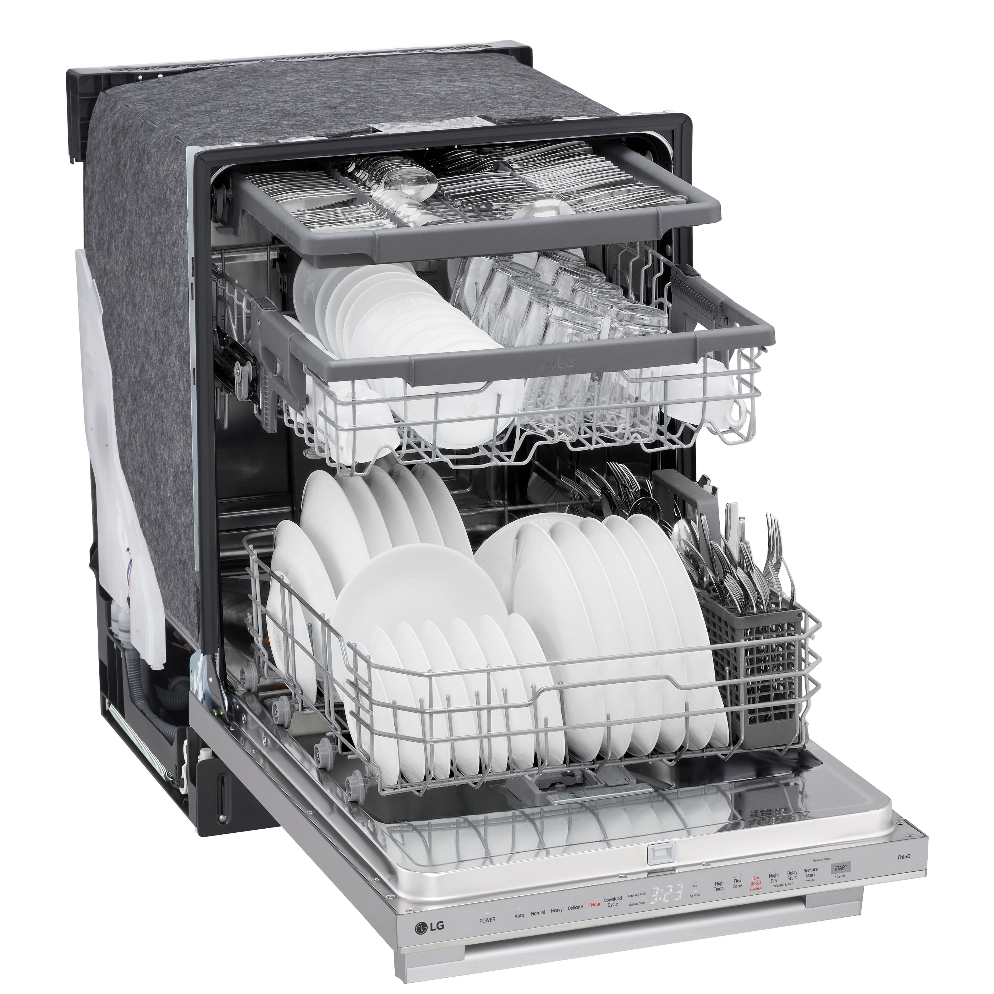 This question was asked about the related product: LG - 24" Top Control Smart Built-in Stainless Steel Tub Dishwasher with 3rd Rack, QuadWash Pro and 46dB - Black Stainless Steel
