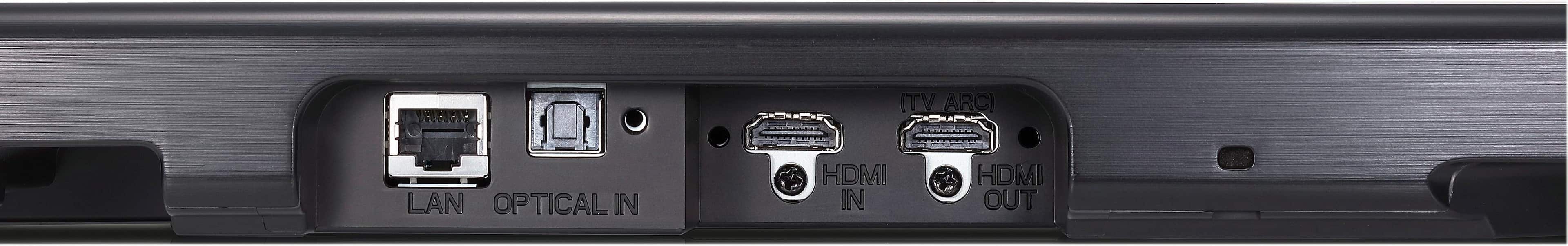 A:Answer The SJ8 includes 1 HDMI and 1 optical digital audio for connecting to your TV. It can be wall mounted using a wall mount bracket that is included with the unit. If you are in need of any assistance, have additional questions, or would just like to see our helpful tips, check us out on Twitter @LGUSSupport or you can give us a call at 800-243-0000. ^CP