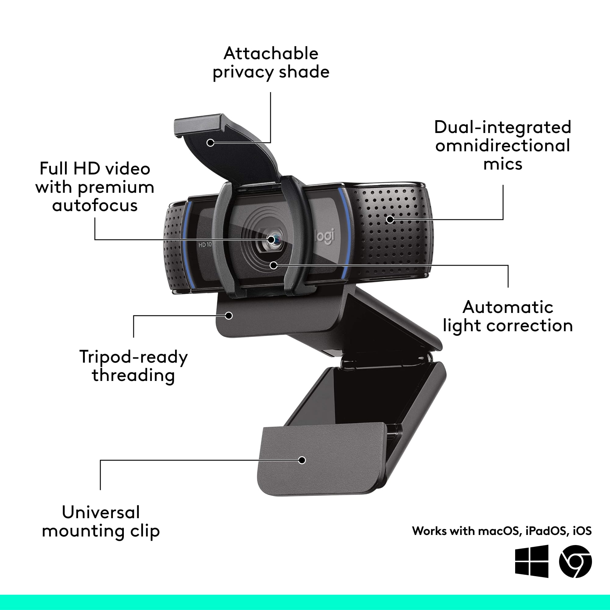 - A:Answer The C920S Pro HD Webcam comes with a flexible clip that’s designed to sit securely on the top edge of most monitors and laptop screens. If your monitor has a thicker bezel, the clip adjusts to grip it firmly. It also has a standard tripod thread underneath, so if you prefer, you can mount it on any tripod for more stability or custom positioning.