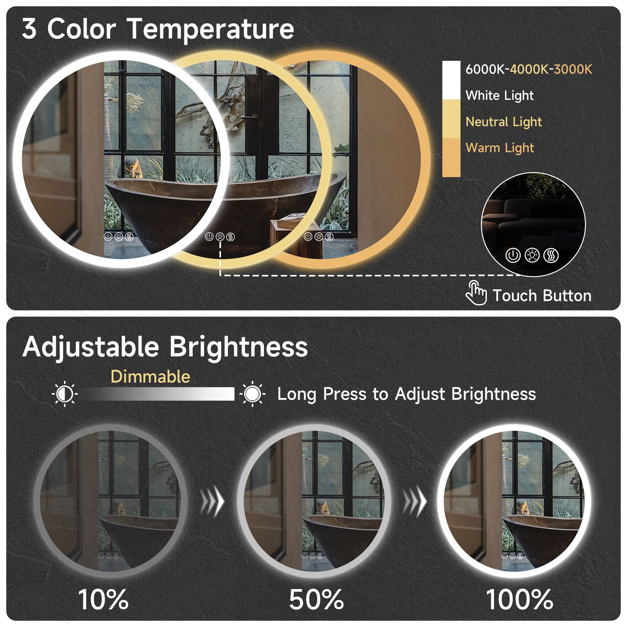 - A:Answer The LED lights can be dimmed from 10% to 100% brightness.