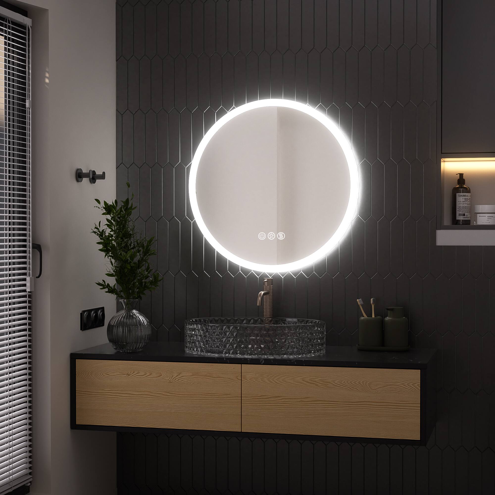 - A:Answer Yes, the mirror has a built-in anti-fog feature to ensure a clear reflection.