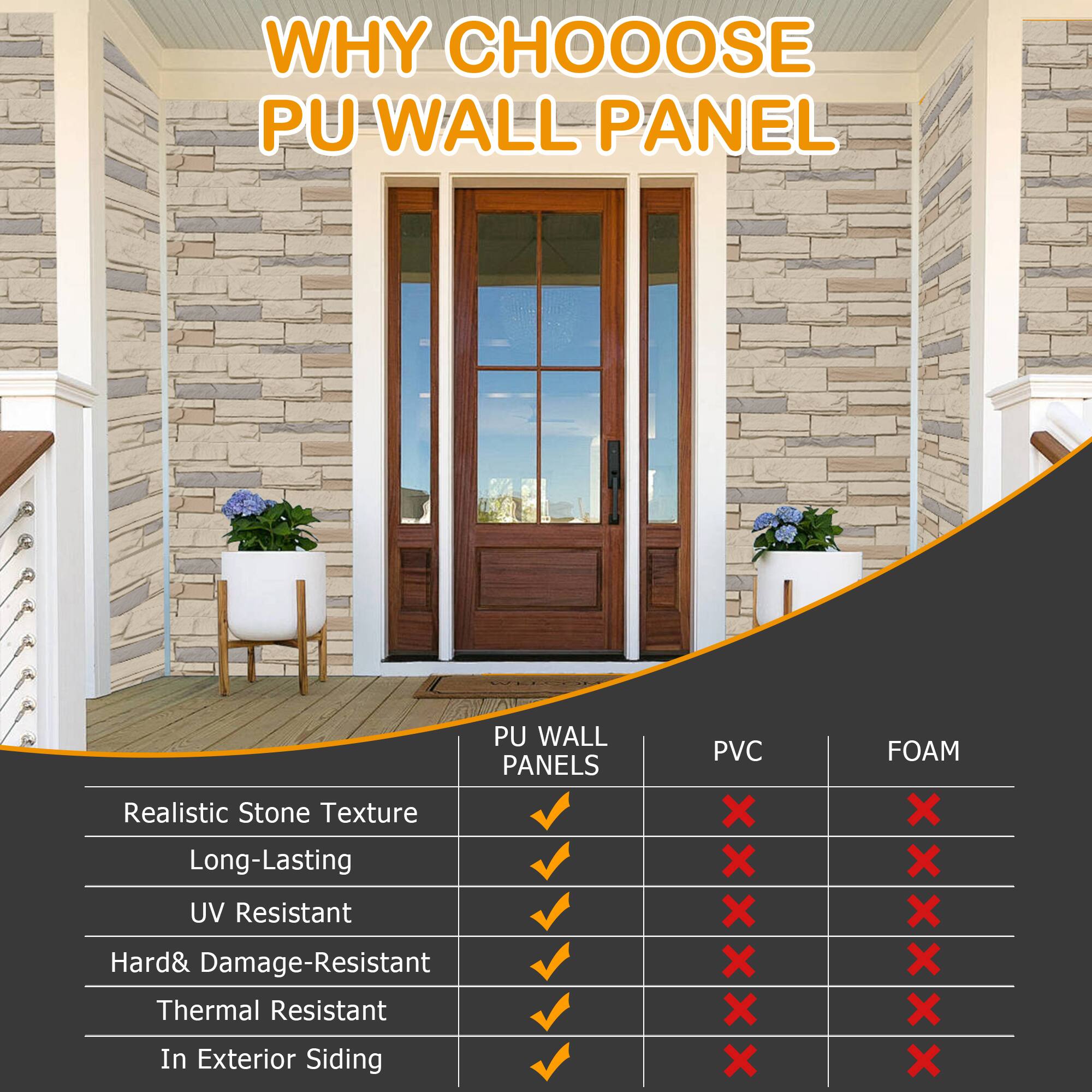 LOVMOR - 6 Pack Faux Stone Wall Covering Panels for Interior and Exterior Decor PU Stone Veneer - Brown Stone Rock