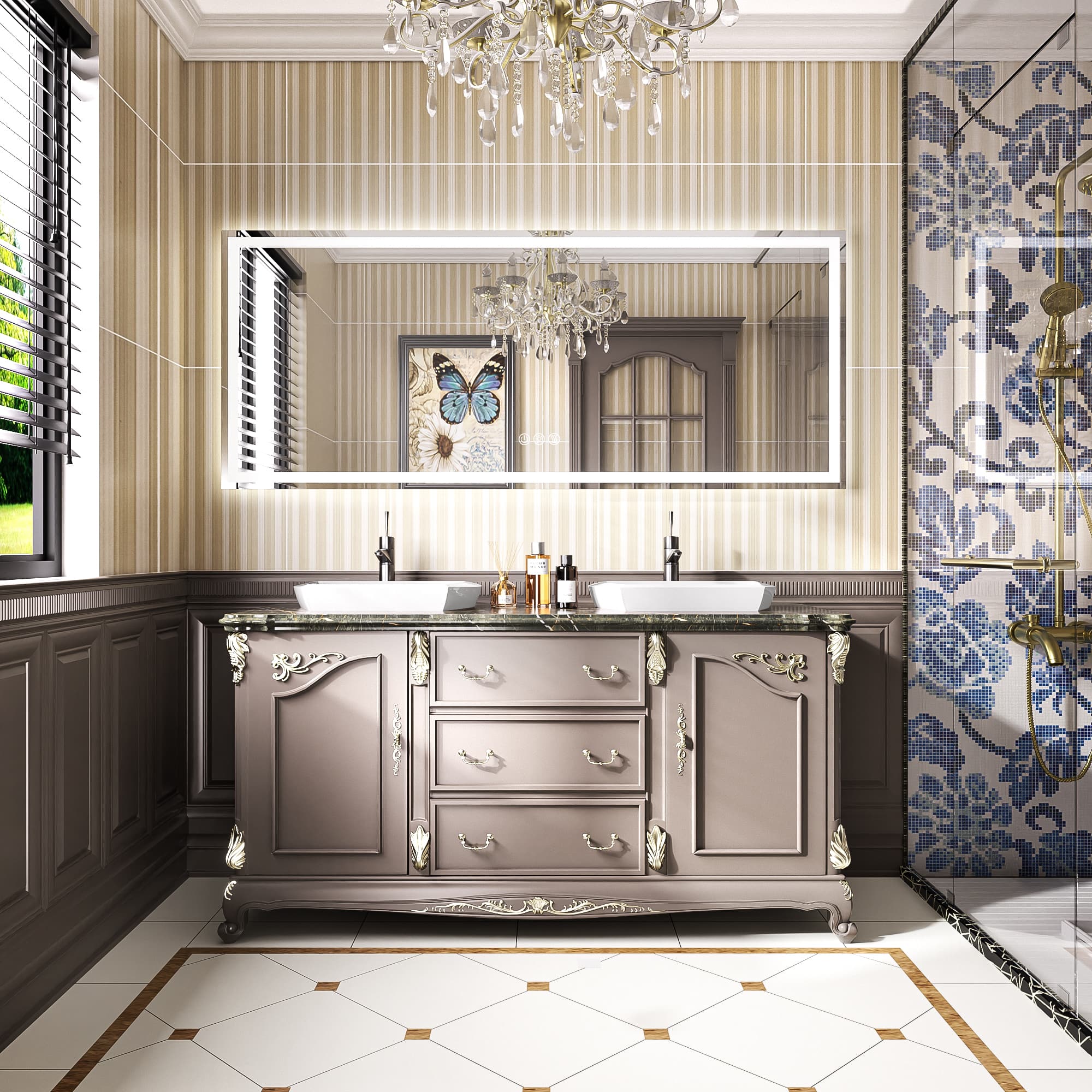 - A:Answer The mirror features 3-color frontlit and backlit LED lighting.