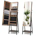 Costway - LED Mirror Jewelry Cabinet with 20 LED Lights Full-Length Mirror Adjustable Angles - Black$104.99Your price for this item is $104.99