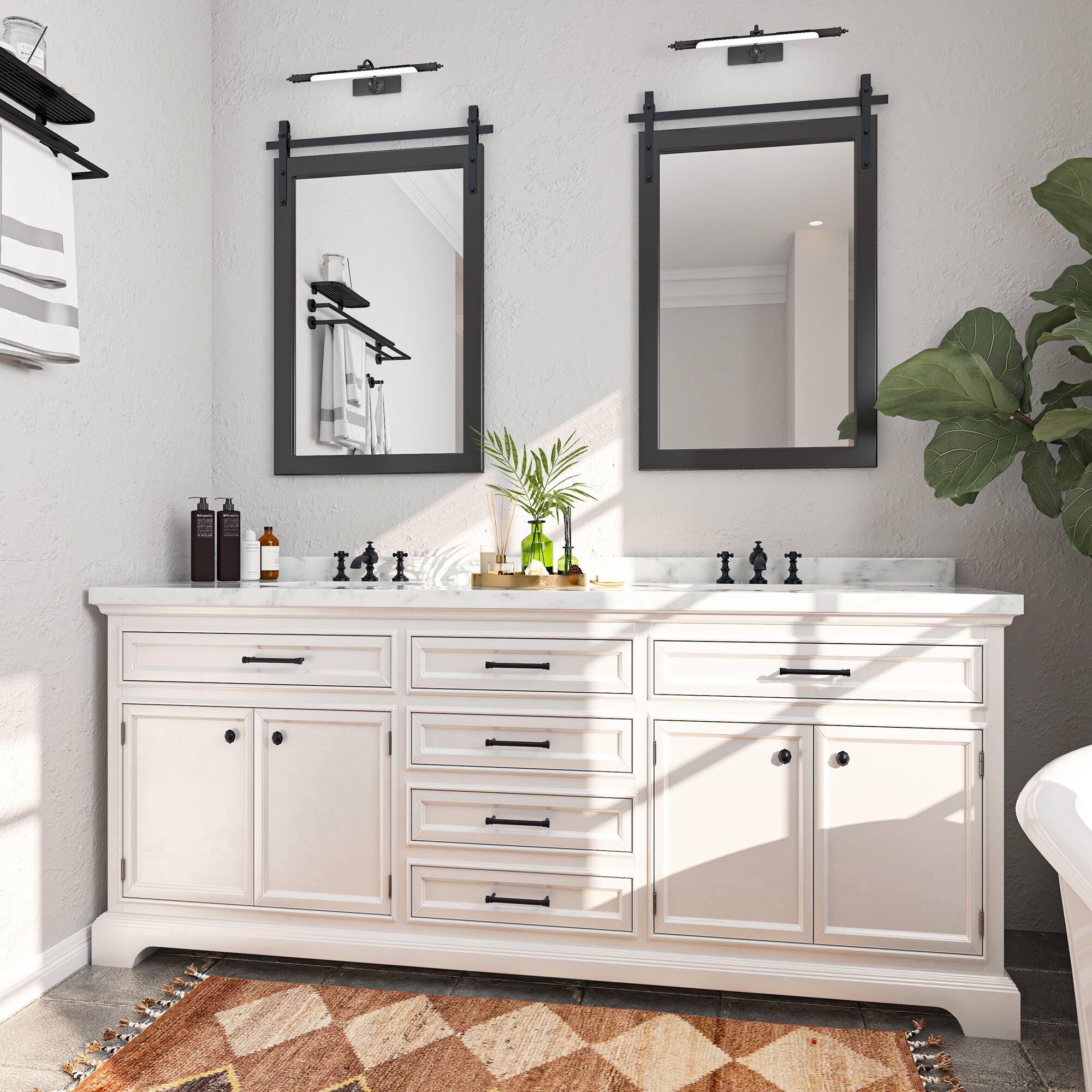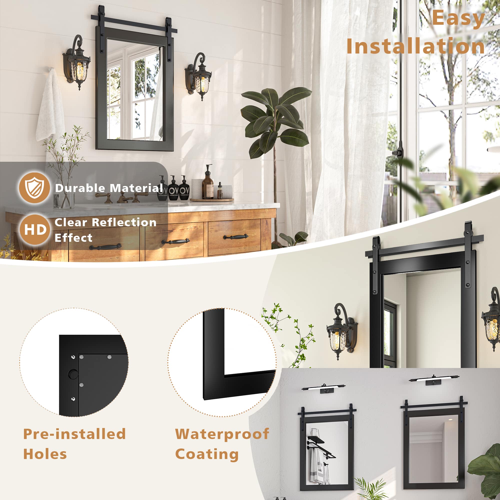 - A:Answer This mirror is perfect as a decorative accent in farmhouse-themed living rooms or bathrooms.