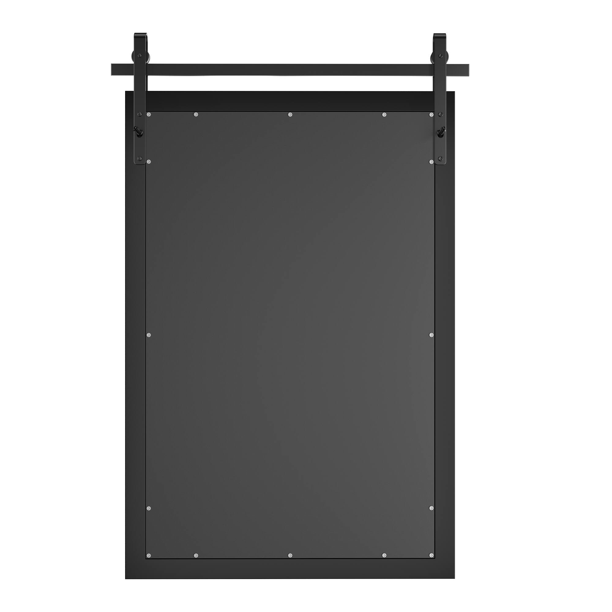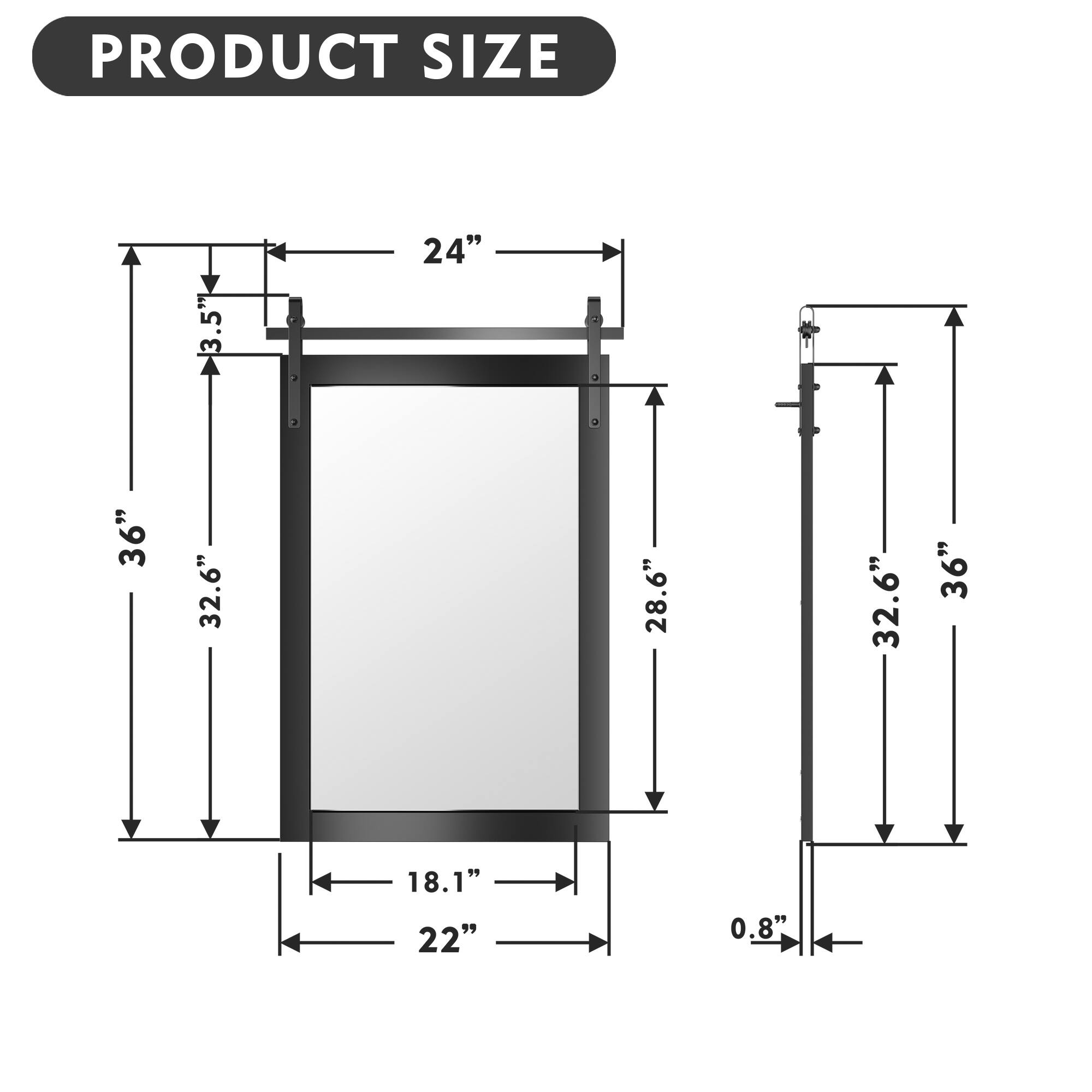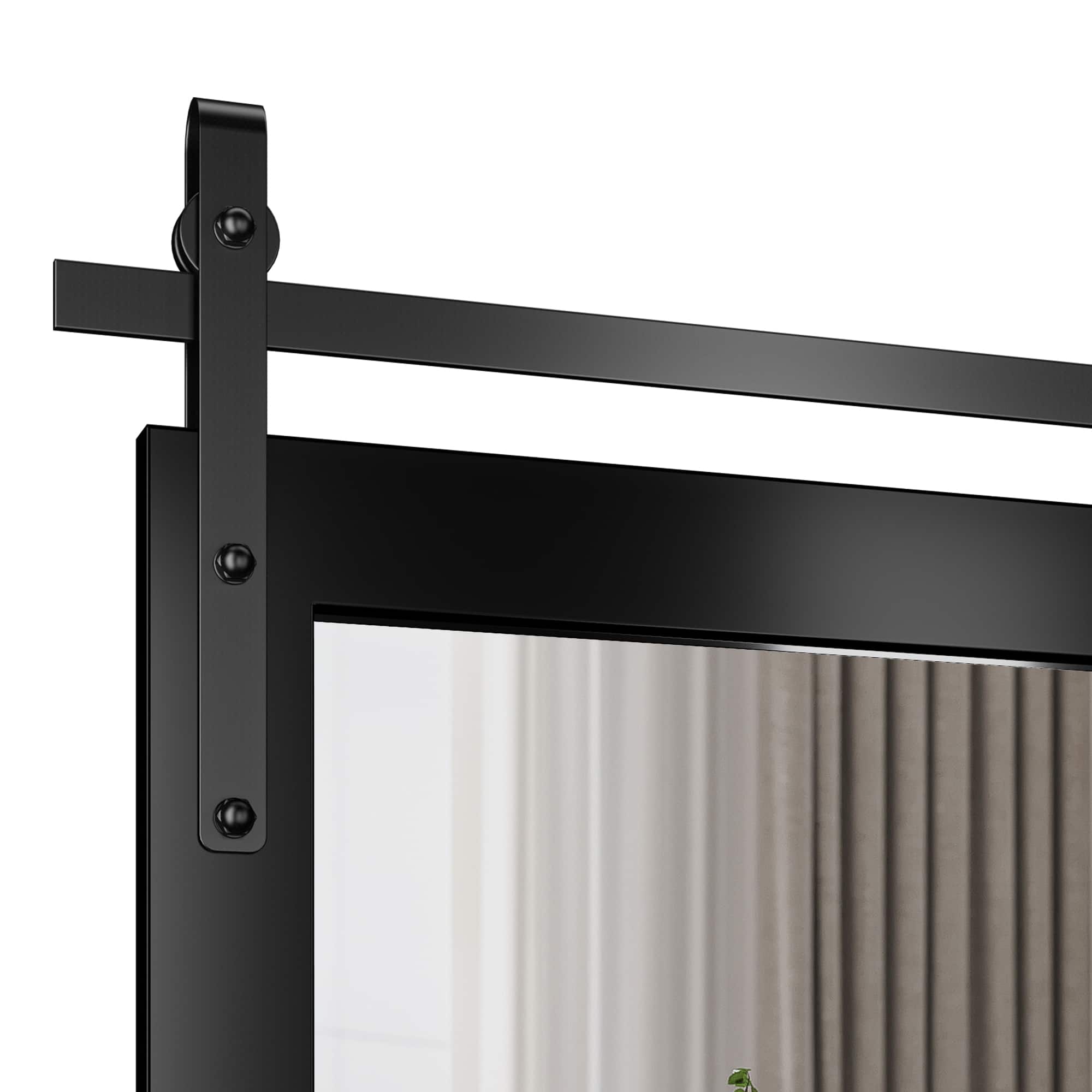 - A:Answer This mirror has a heavy-duty wooden frame in a barn door style.