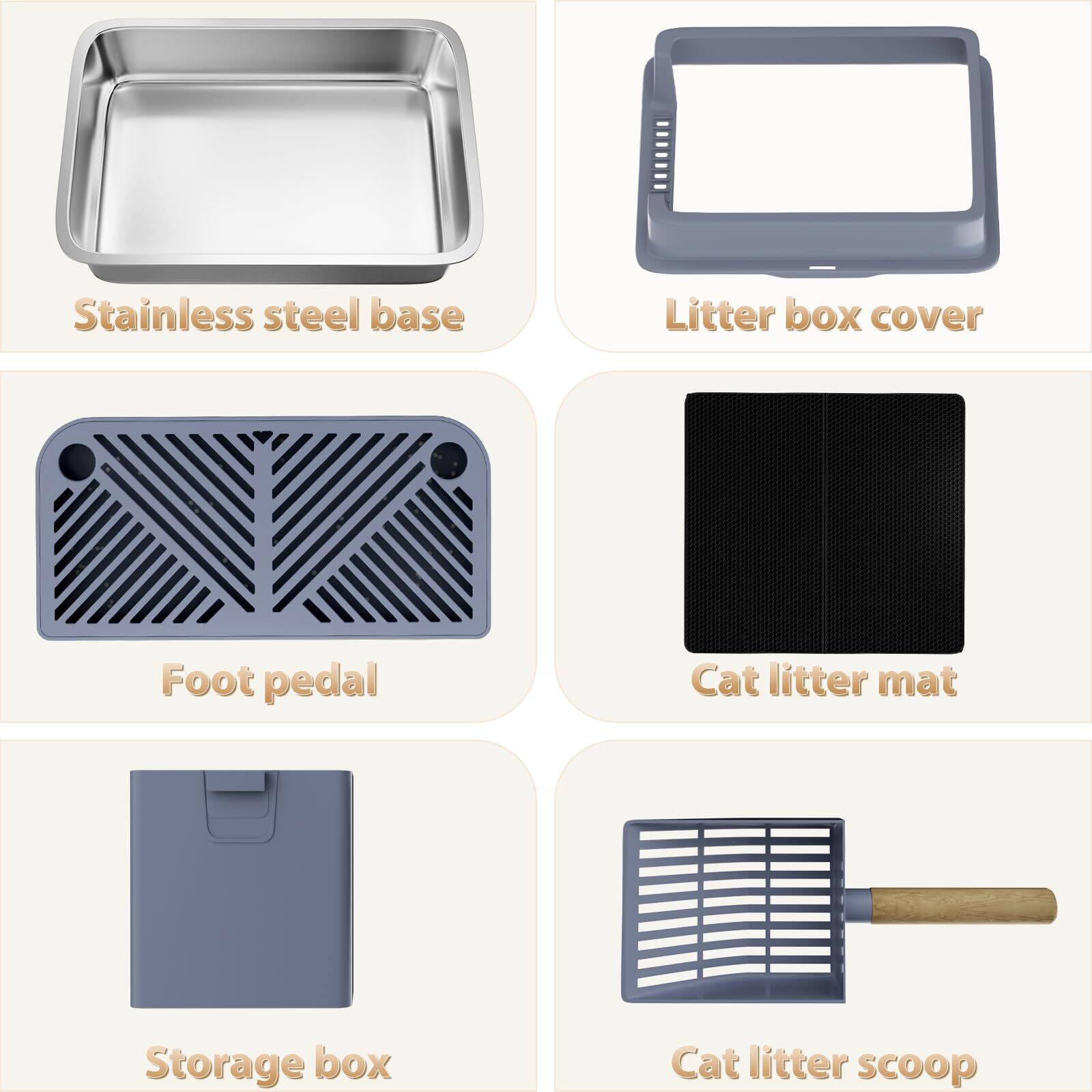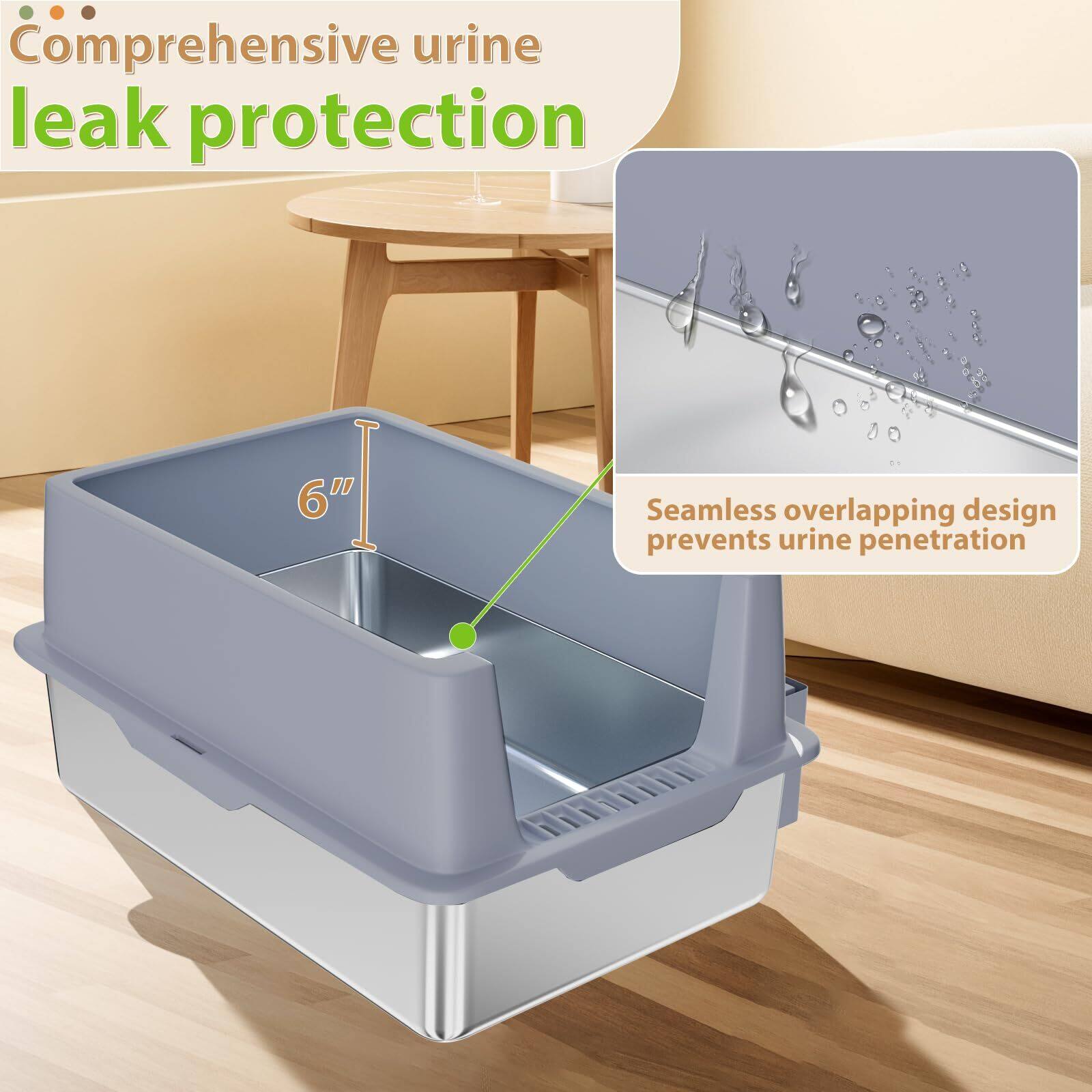 - A:Answer The litter box is made of durable, scratch-resistant, and odor-free stainless steel.