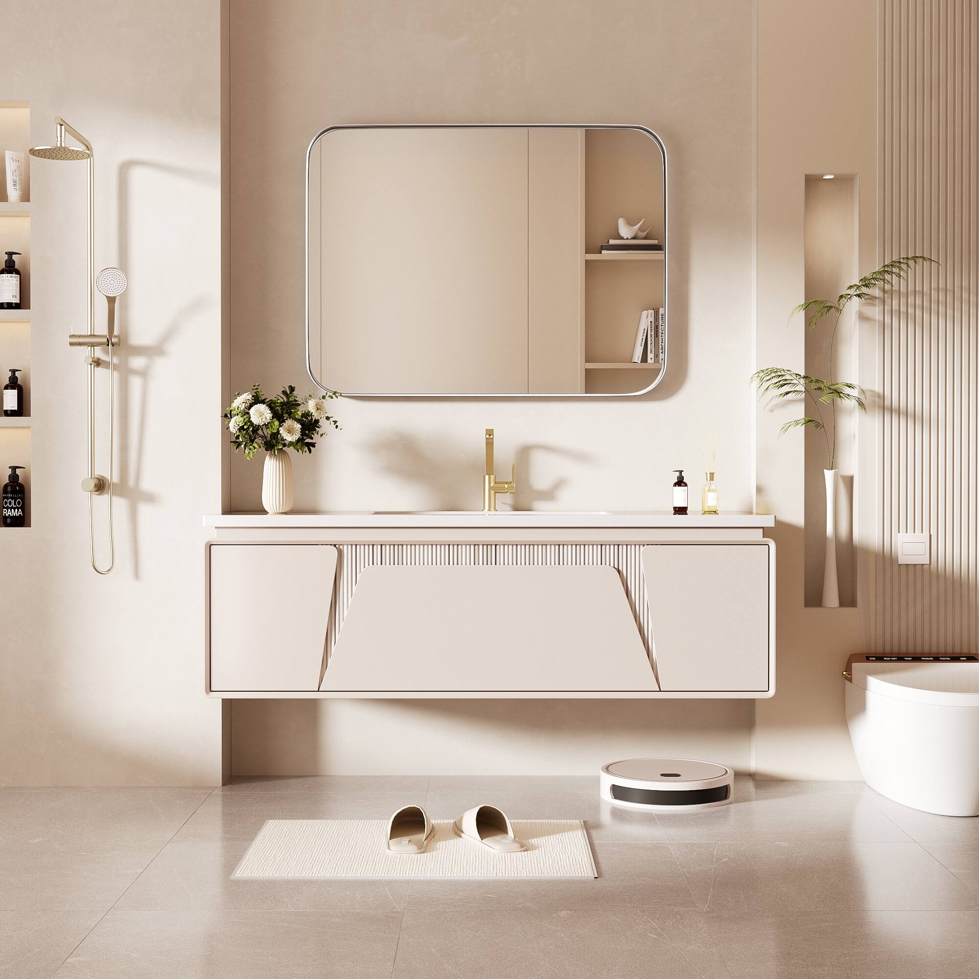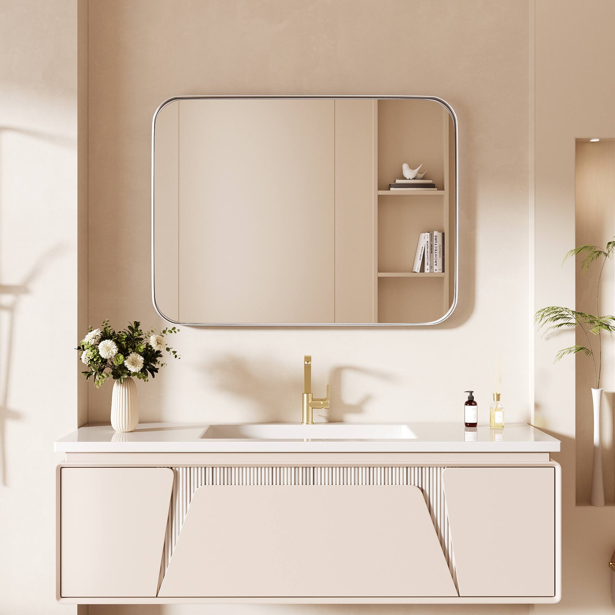 This question was asked about the related product: LOVMOR - Tempered Glass Rounded Rectangle Framed Wall-Mounted Bathroom Vanity Mirror - 24" x 32" - Gold
