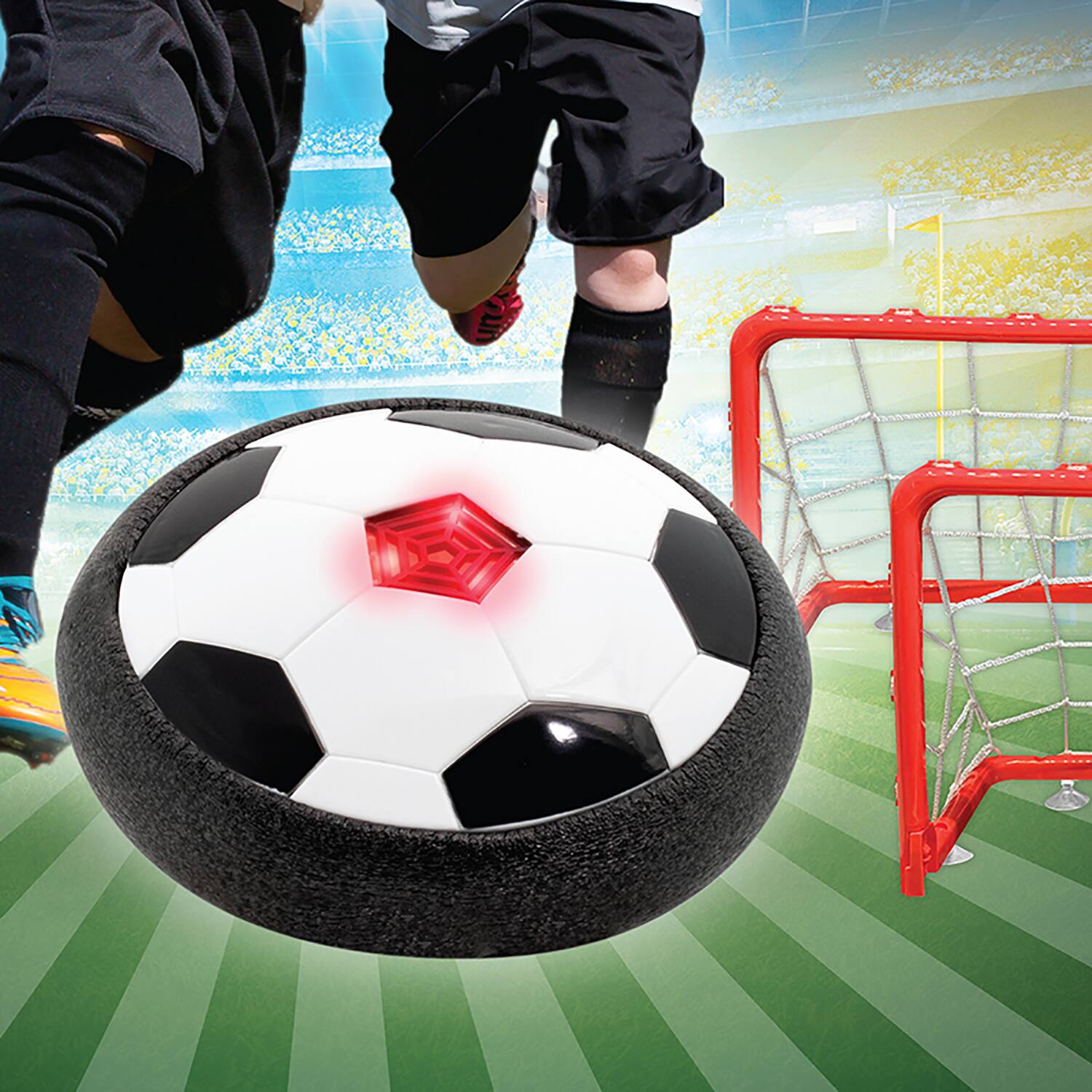 This question and answer was generated by AI based on customer and product data.Q: QuestionHow does the Air Soccer Hover Ball Disk work?