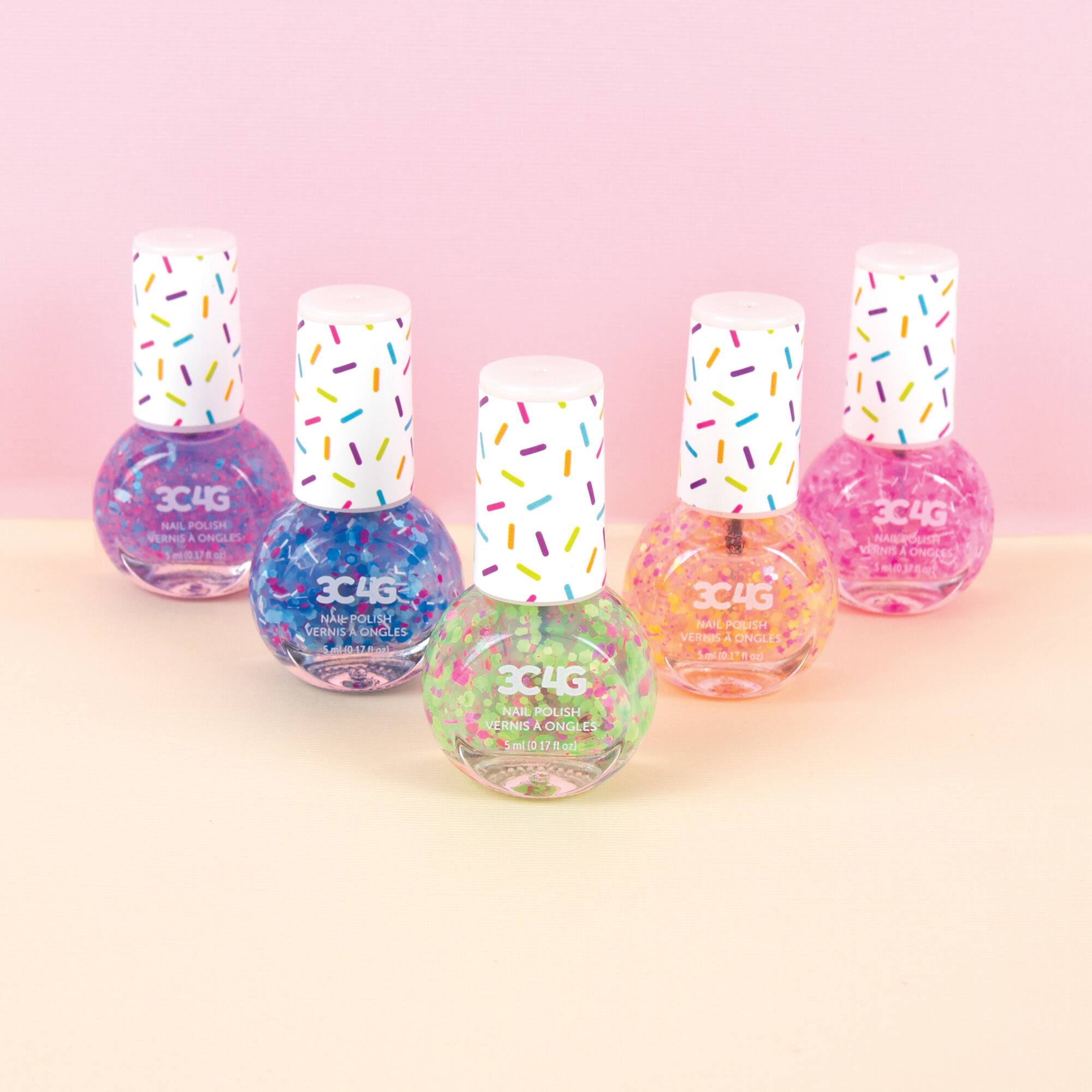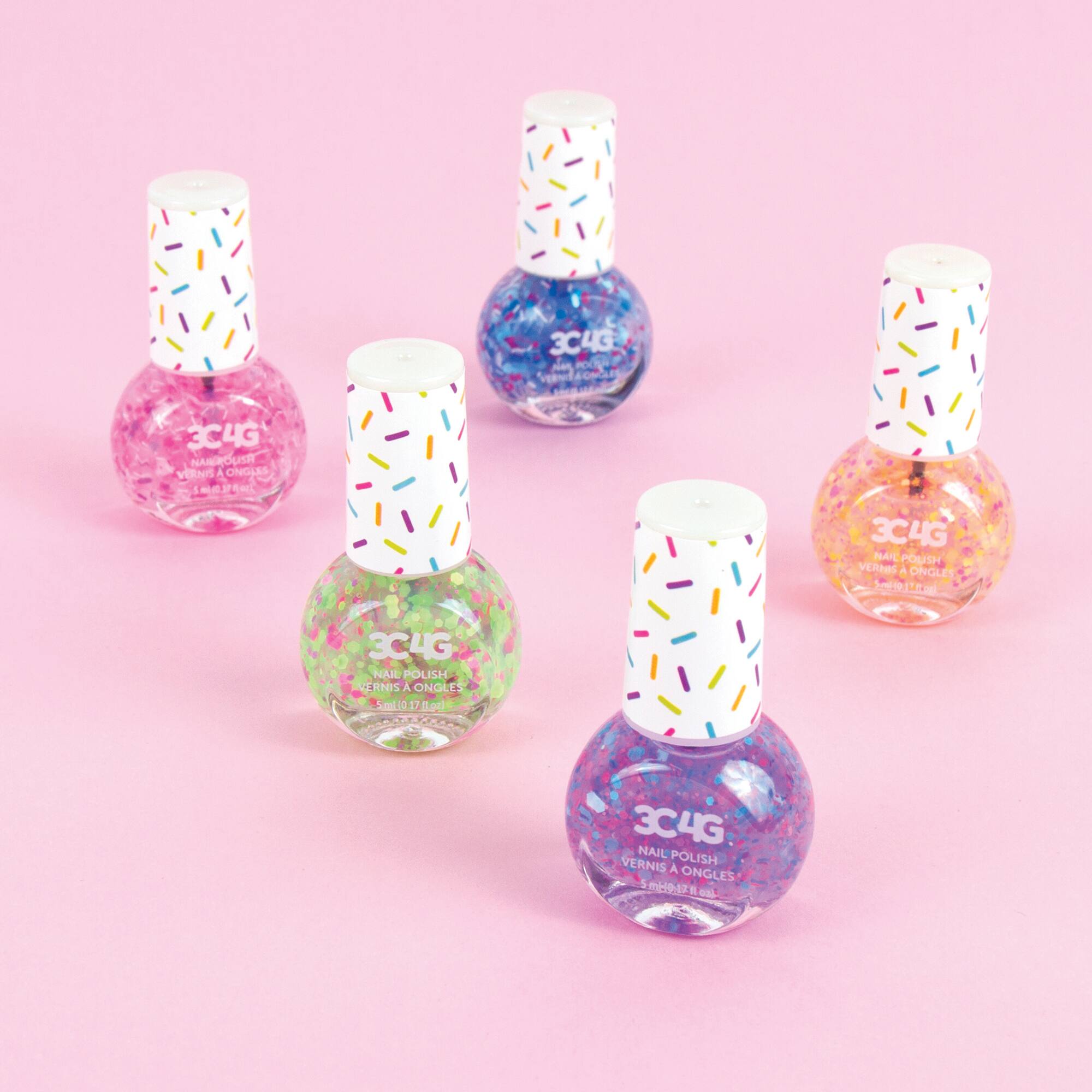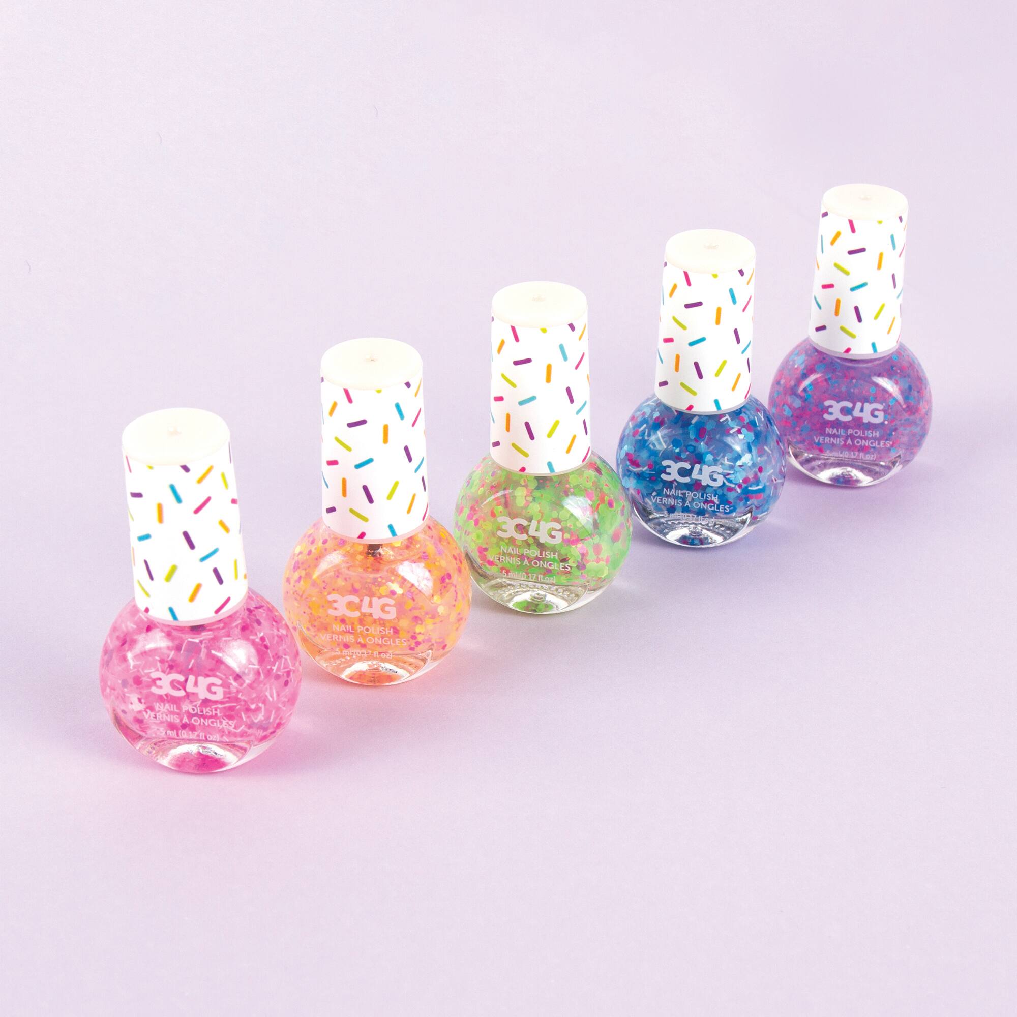 - A:Answer This confetti nail polish set includes five bottles.