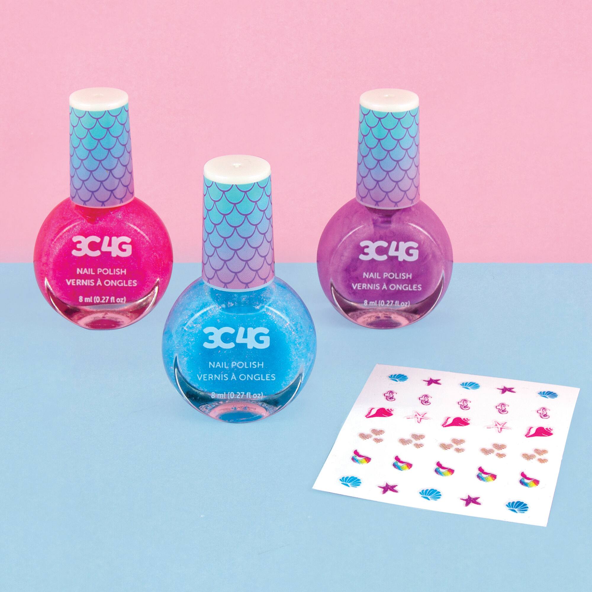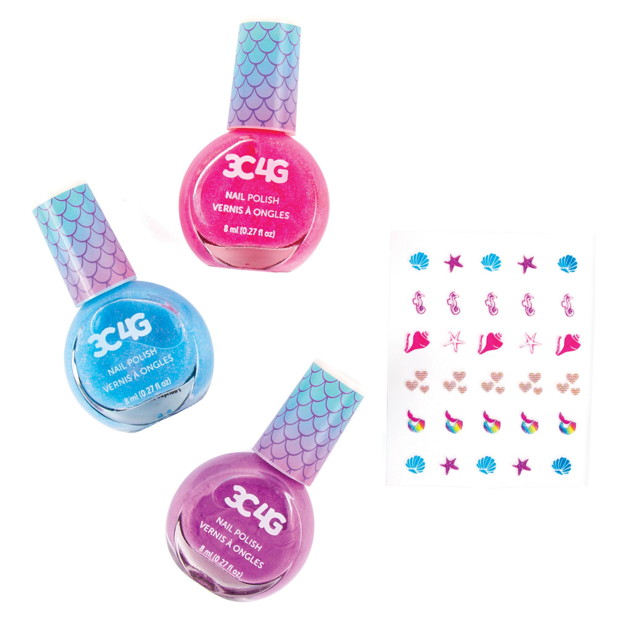 - A:Answer This nail polish set for girls includes a quick dry polish that can be decorated with mermaid nail art stickers.