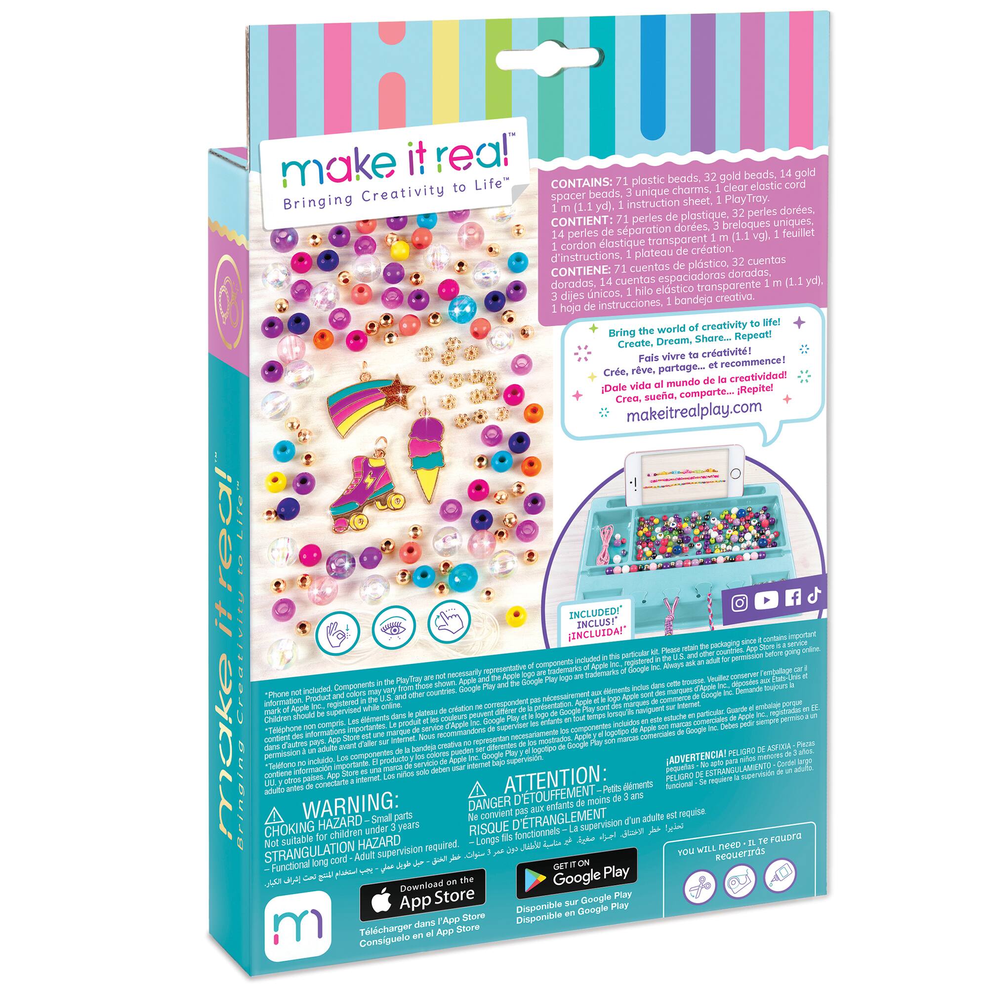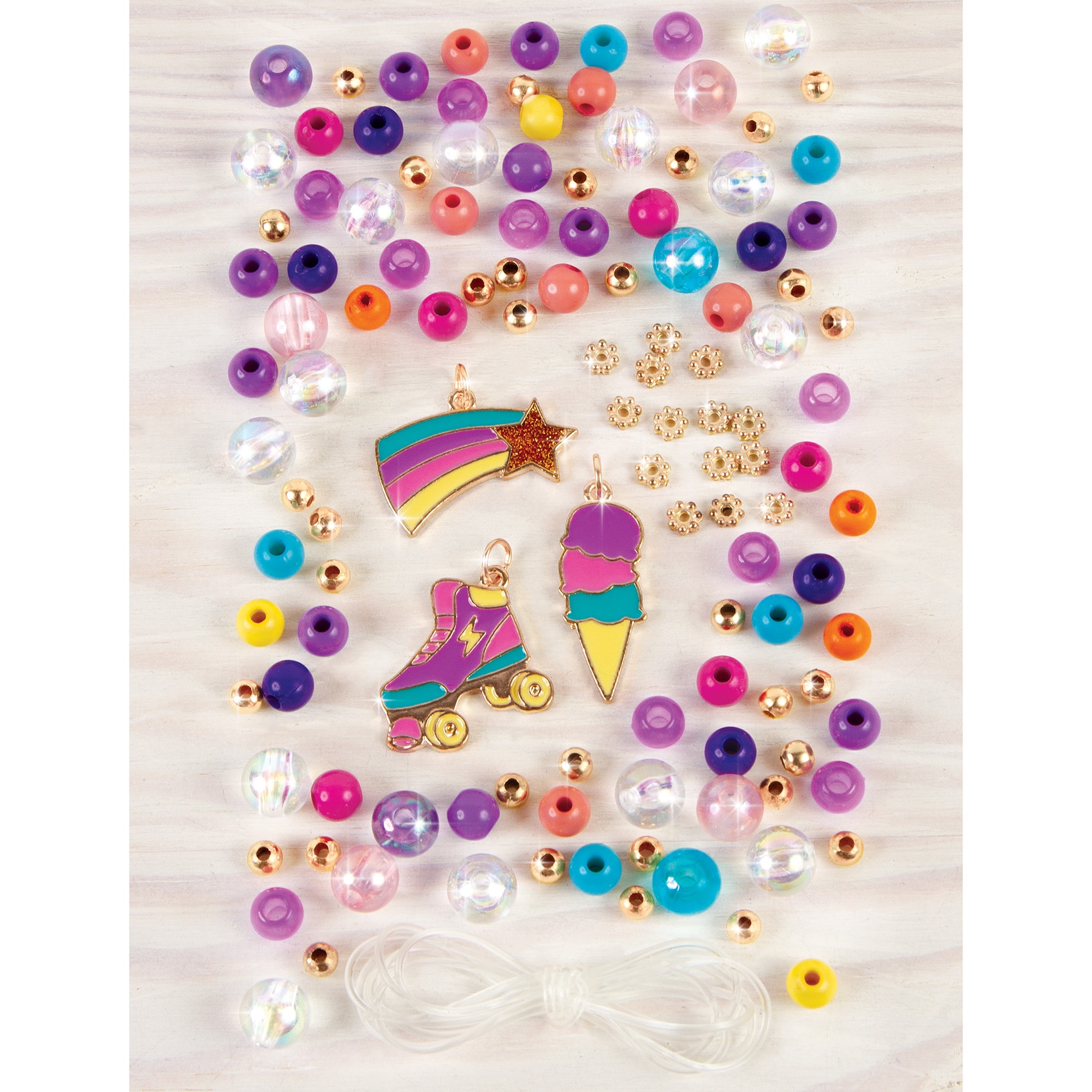 - A:Answer This jewelry kit includes everything your child needs to create up to three unique and expressive charm bracelets, along with a beaded ring! This includes elastic cord, 70+ stylish beads, 30 gold beads, 3 unique charms, and instructions.