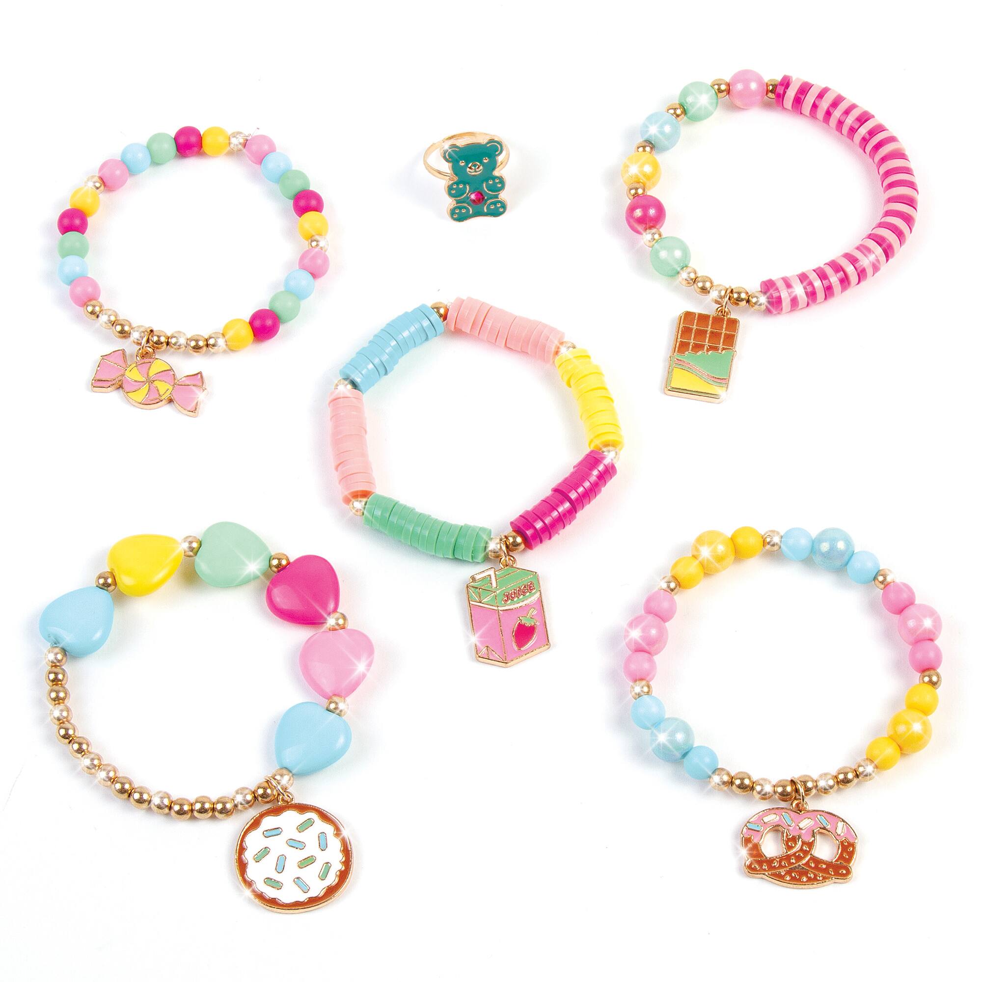 - A:Answer This kit allows you to create five snack-themed bracelets.