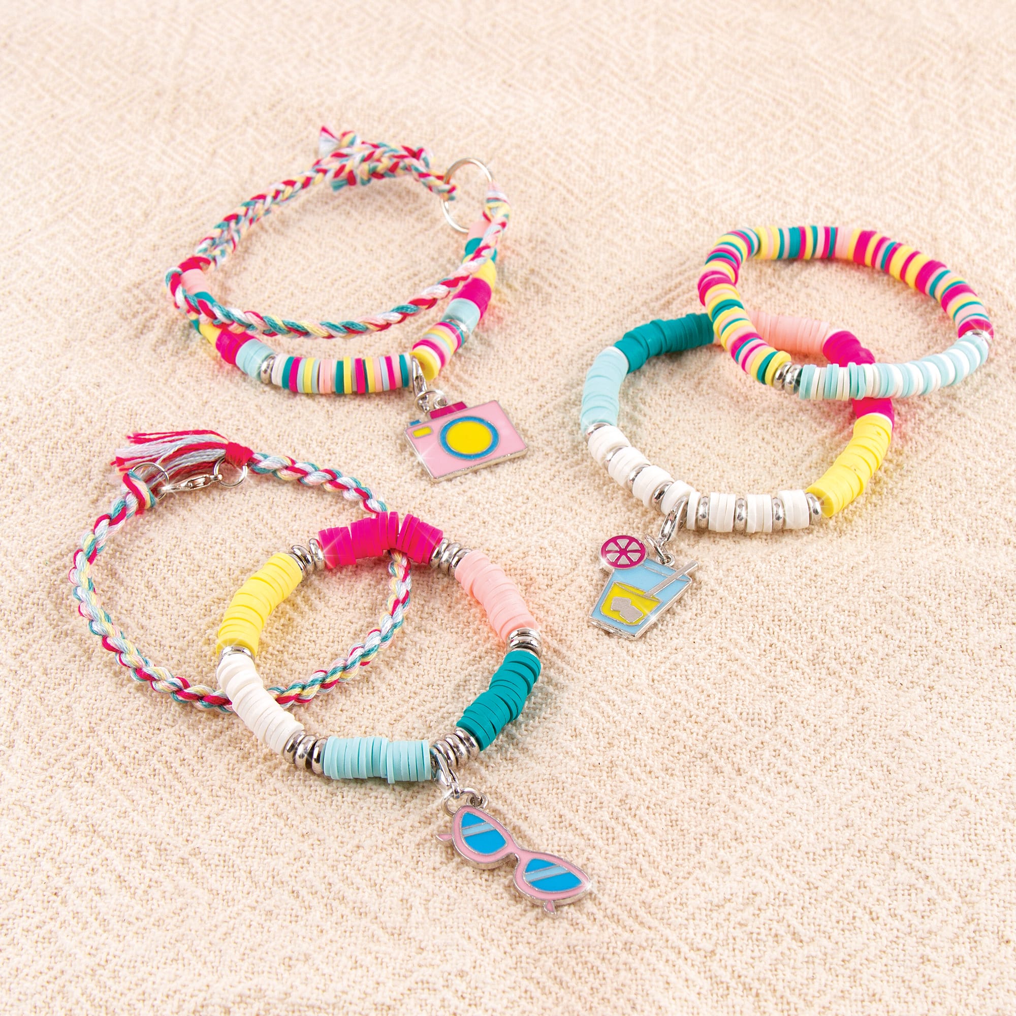 - A:Answer This kit comes with everything needed to make five trendy heishi bead bracelets in bright colors.