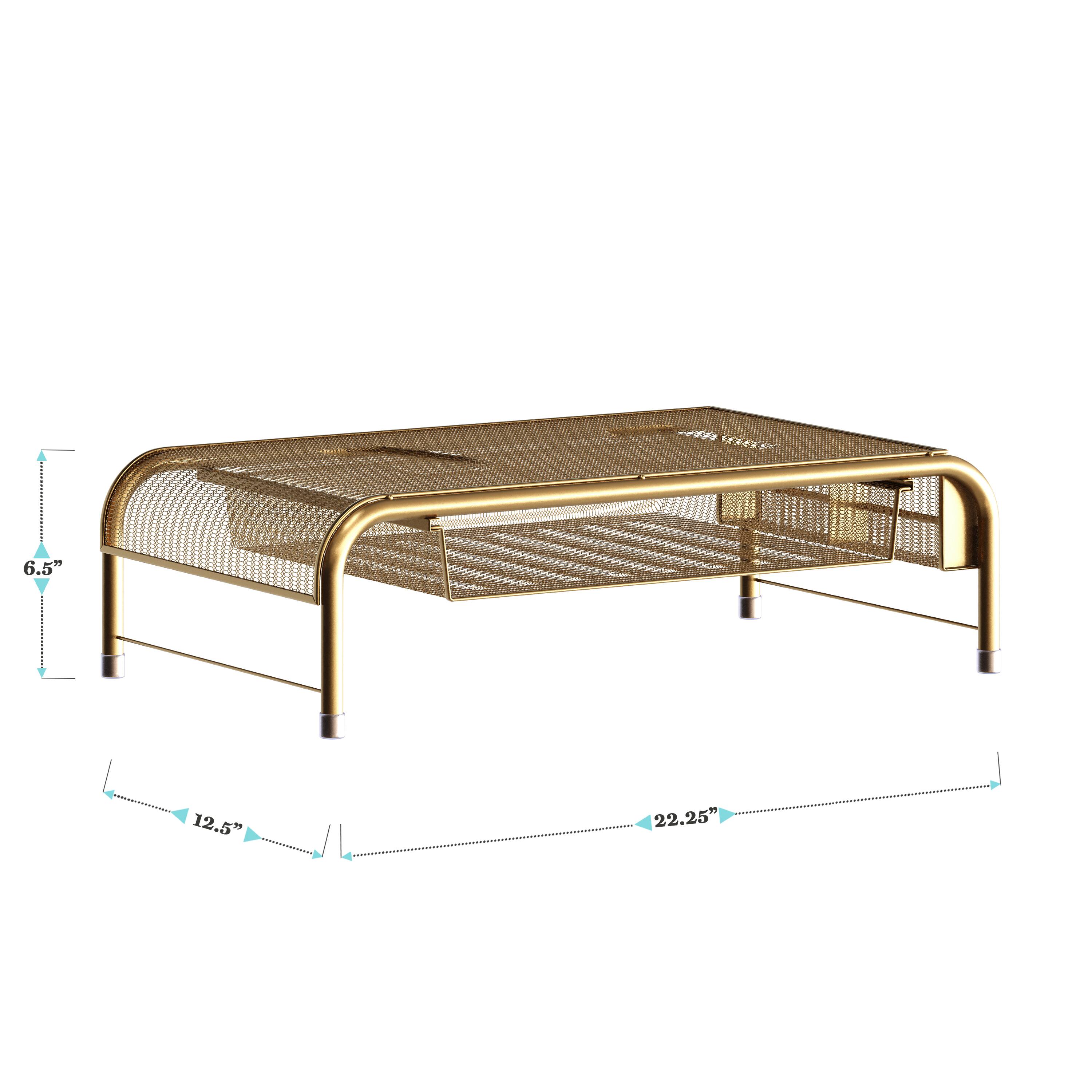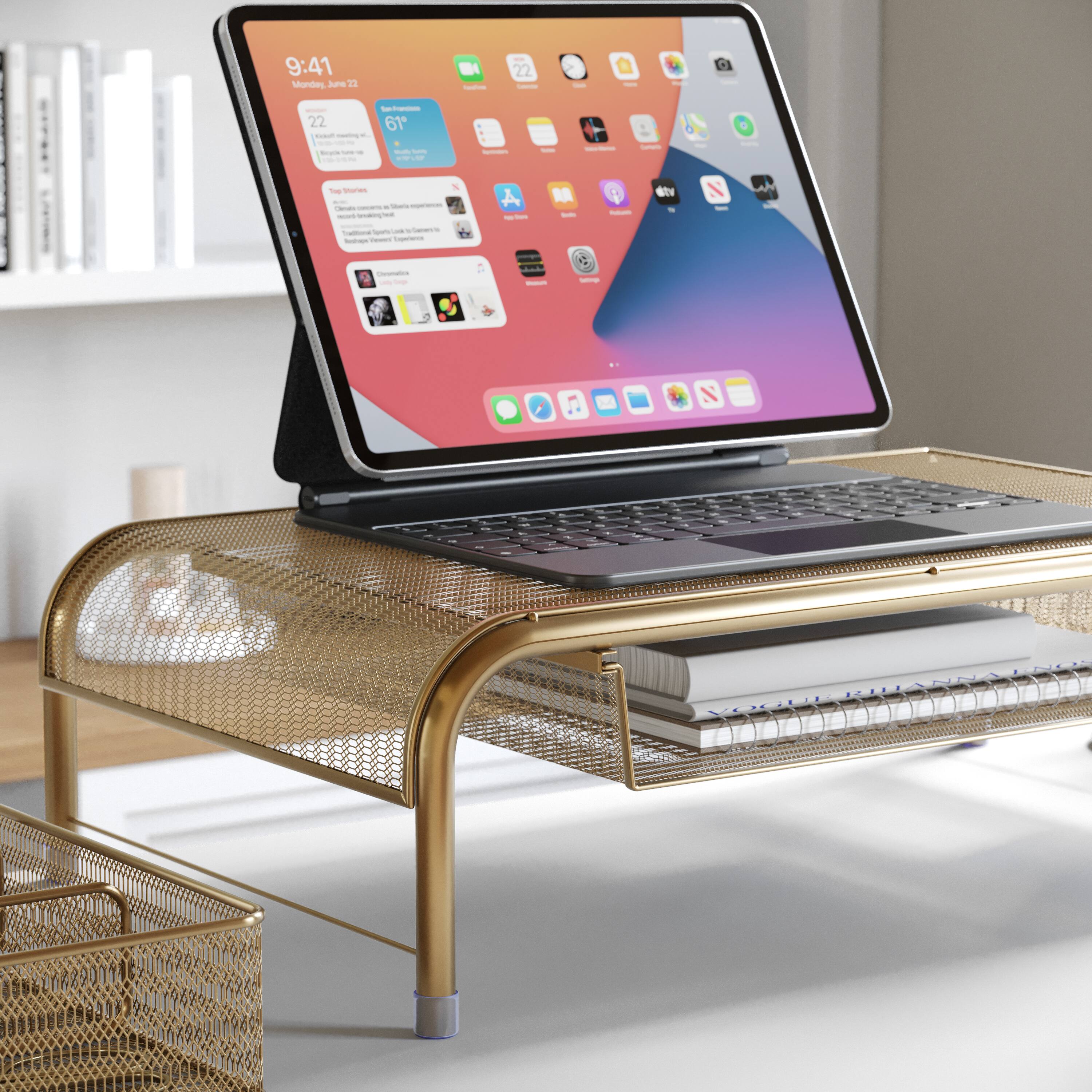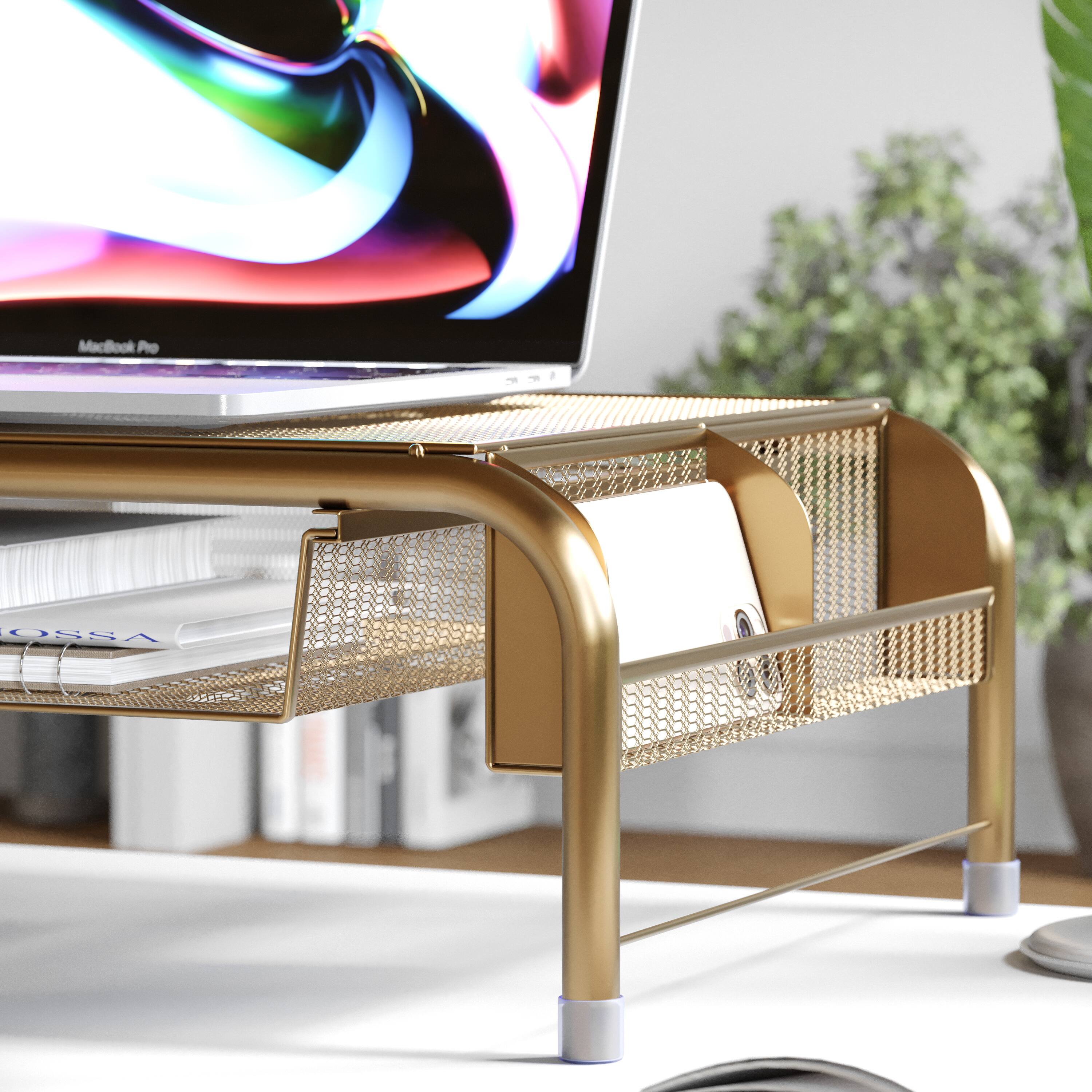 - A:Answer This monitor riser features a contemporary style.