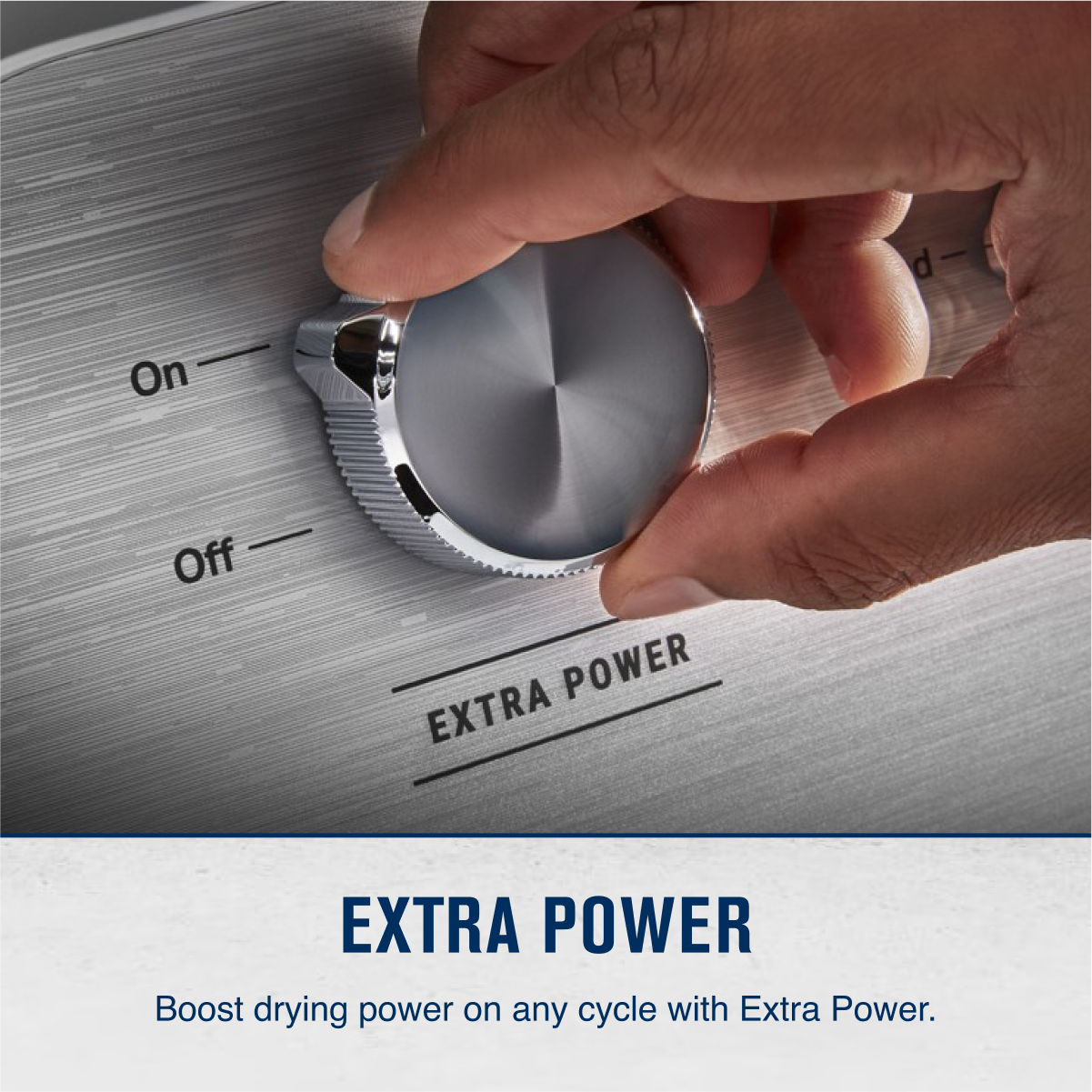 - A:Answer The Extra Power button boosts drying power on any cycle by extending time, heat and tumbling. One push helps prevent underdrying by getting thick fabrics, pockets and seams drier the first time.