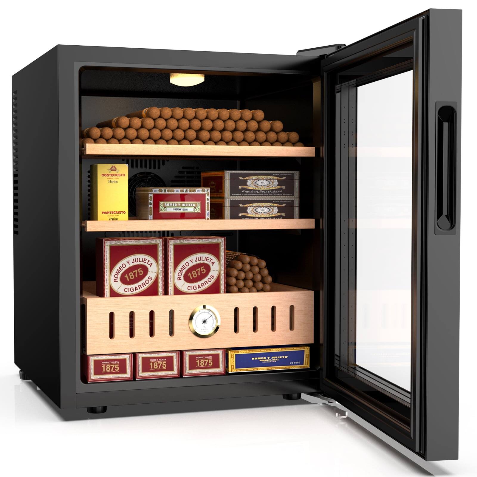 Mirfee - 50L Cigar Humidor with Cooling System, Spanish Cedar & Hygrometer - Holds 350 Cigars - Black