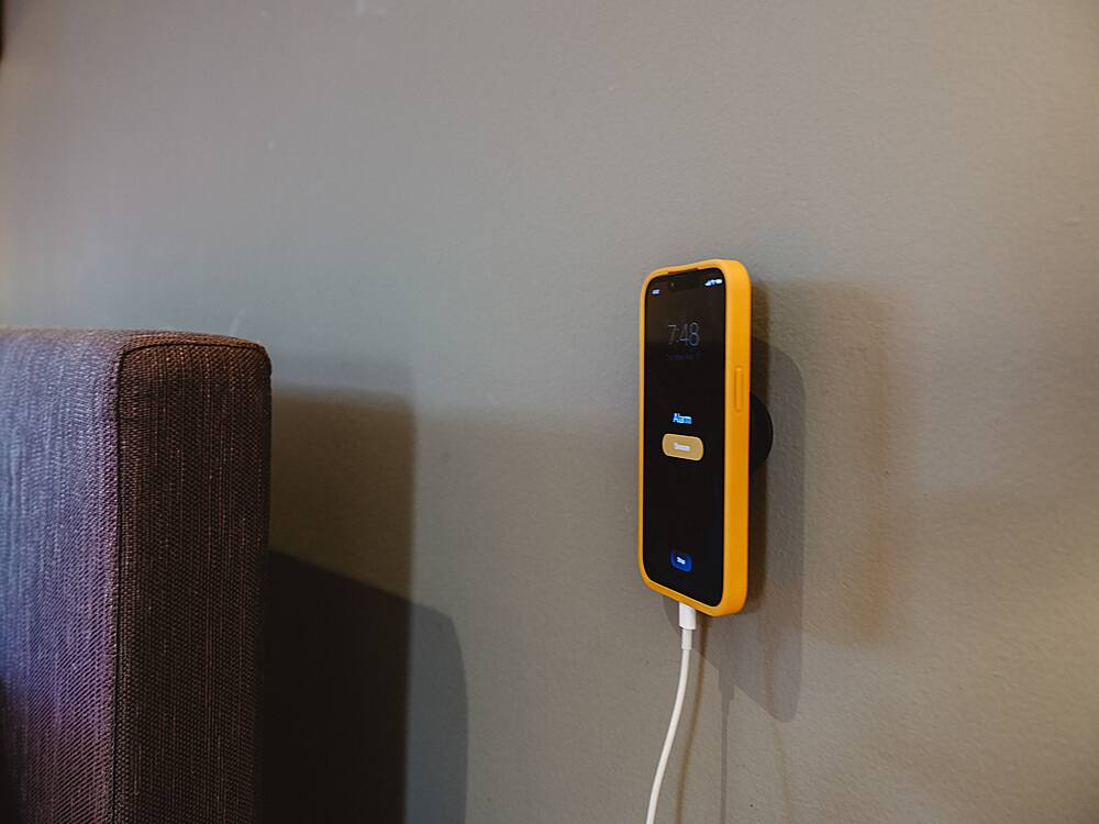 - A:Answer The mount can be used with a phone case. It includes a strong magnet array that is even stronger than standard MagSafe accessories, providing extra confidence that your phone won't fall off the wall, even with a case on.