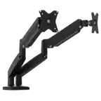 - A:Answer Hello, Compatibility: 75mm x 75mm or 100mm x 100mm VESA patterns and screens up to 32" Tilt range: 90 degrees up and 45 degrees down Swivel range: 90 degrees left and 90 degrees right Screen rotation: 180 degrees Extension from wall: 3.5" min - 21.2" max