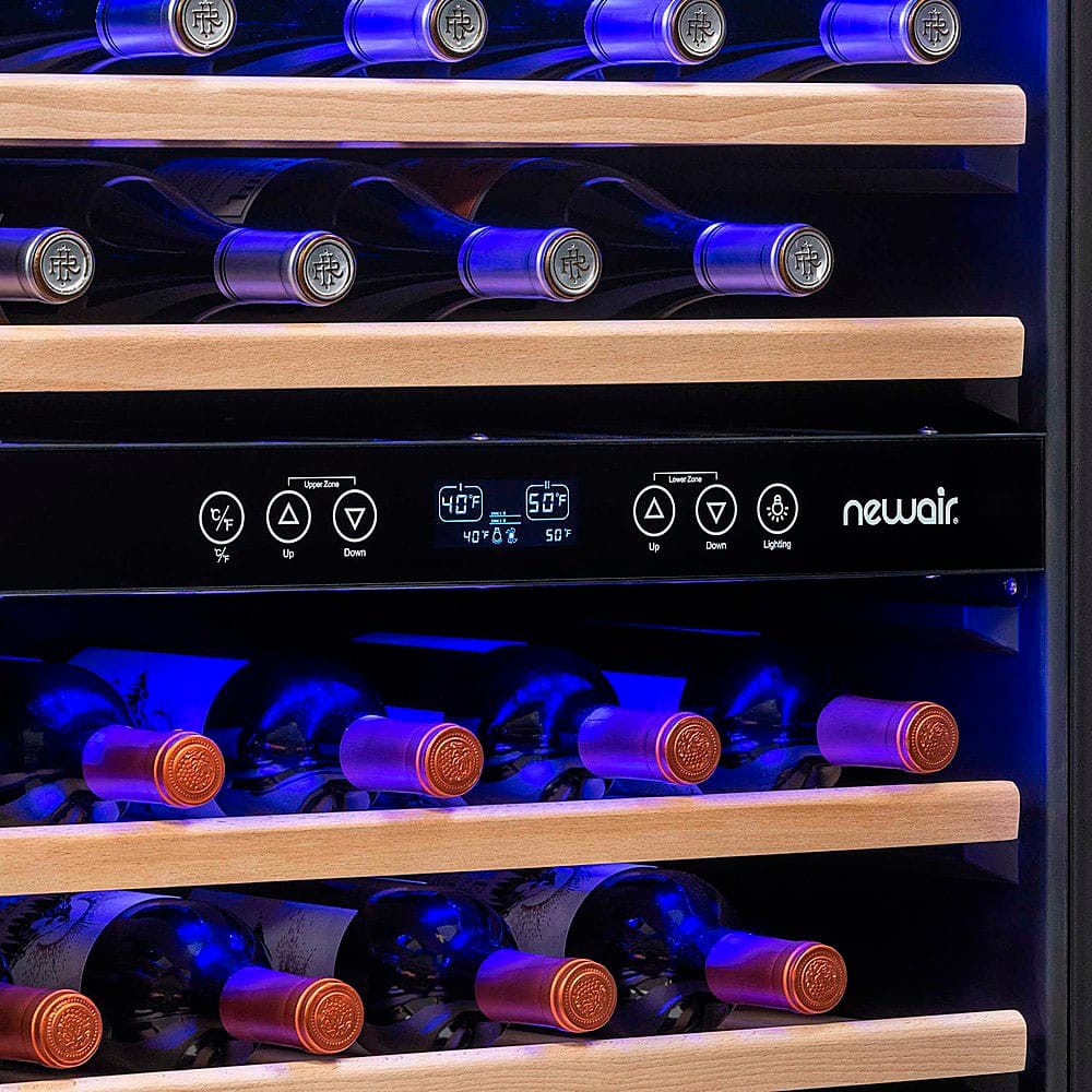 - A:Answer The NewAir 46-Bottle Factory Refurbished Dual Zone Built-in Wine Fridge can hold up to 46 standard 750 mL wine bottles. It offers ample storage space to keep your wine collection chilled and organized.
