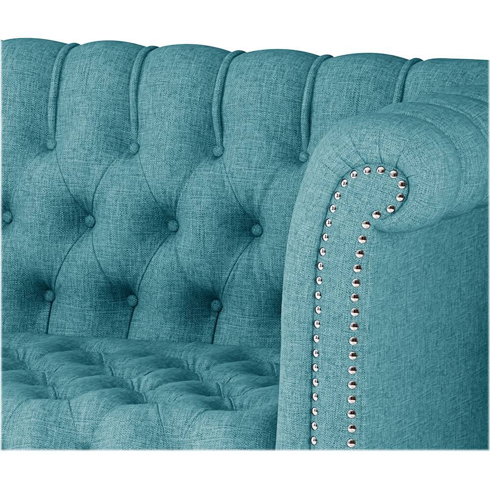 Noble House - Buford Chesterfield 3-Seat Fabric Sofa - Teal