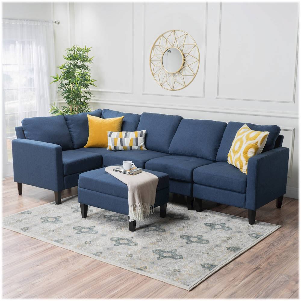 This question was asked about the related product: Noble House - Gosport Fabric 6-Piece Sectional Sofa With Ottoman - Light Gray