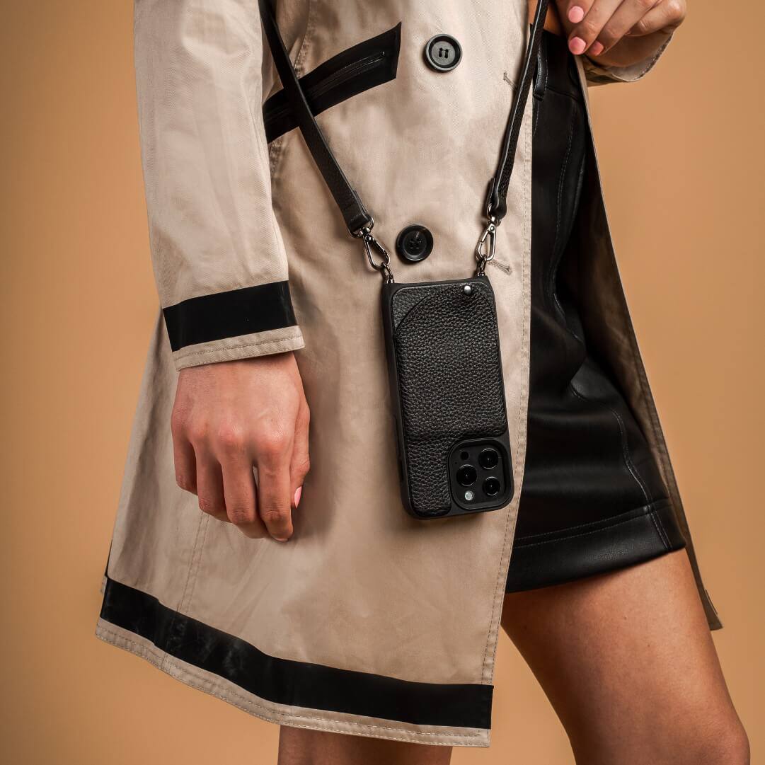Noémie - Wallet & Crossbody Strap Case for iPhone 13 - Black