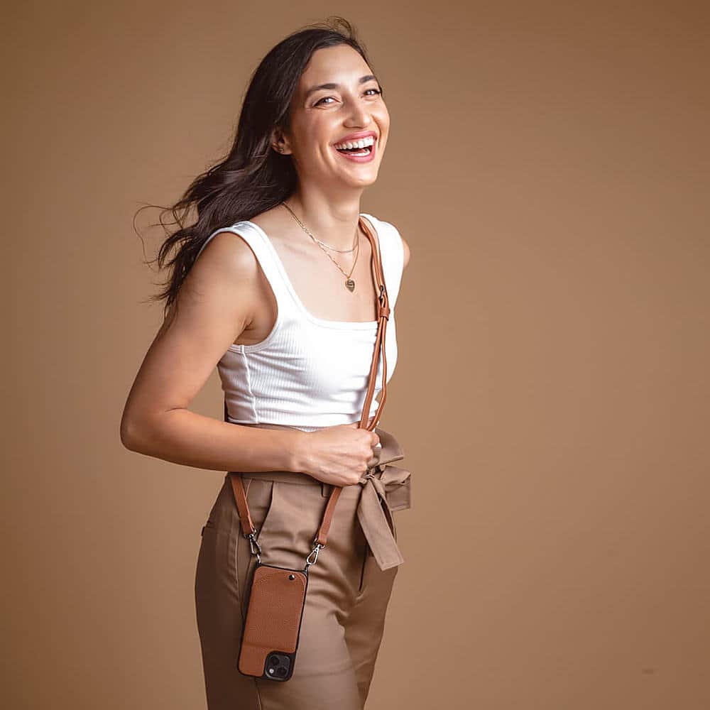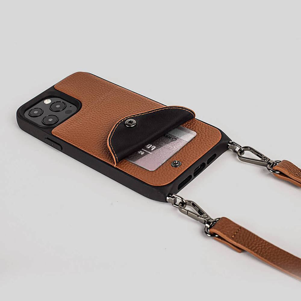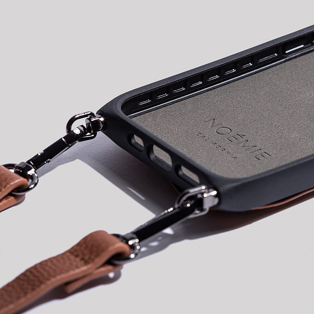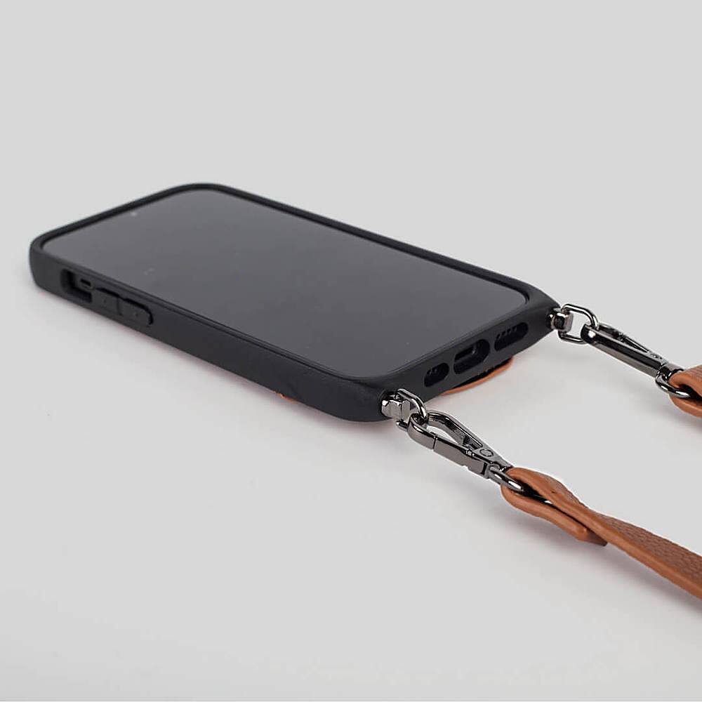 Noémie - Wallet & Crossbody Strap Case for iPhone 13 Pro - Tan/Black